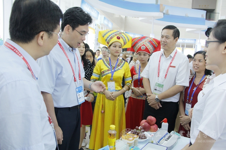 2015年9月19日,自治區高校工委書記、教育廳廳長秦斌、副廳長黃雄彪、職成處萬鋒鋒副處長等一行觀看東盟職教聯展。