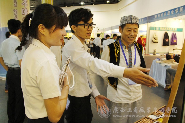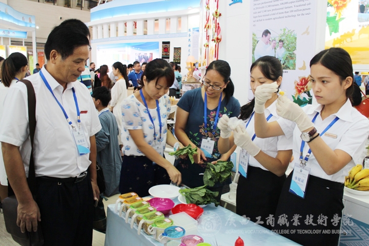 9月18-19日正式展演,我院展位上獨特的展品吸引了教育部副部長魯昕、廣西壯族自治區副主席李康、自治區高校工委書記、教育廳廳長秦斌、主管部門廣西區糧食局領導以及緬甸、馬尼拉和老撾國家教育部長等中外賓客駐足觀看。李維副院長、韋處長以及各代表隊指導老師熱情迎接了前來觀看的賓客,我院展示作品得到外界人士一致肯定和好評,讓外校人士更進一步了解到我院的辦學成果,提高了我院的知名度。