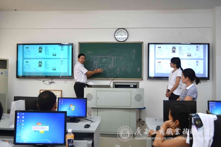 為確保我院順利參展2015年中國-東盟職業教育聯展暨論壇,學院進行了周密部署和前期籌備工作,9月15日下午,院領導李維副院長親臨各參展項目組指導聯展準備工作,隨同前往檢查的有教務科研處韋勝強處長、謝偉燕副處長和財信系林芳主任等,逐個對參展作品和項目進行細致的檢查和指導,要求各項目組師生務必認真仔細準備,并做好一些應急預案工作。與學生進行交流,提出展示現場可能出現的問題及解決方案。對糧食倉儲購銷動態模型講解的同學給予了肯定,并提出了一些建設性的指導意見。