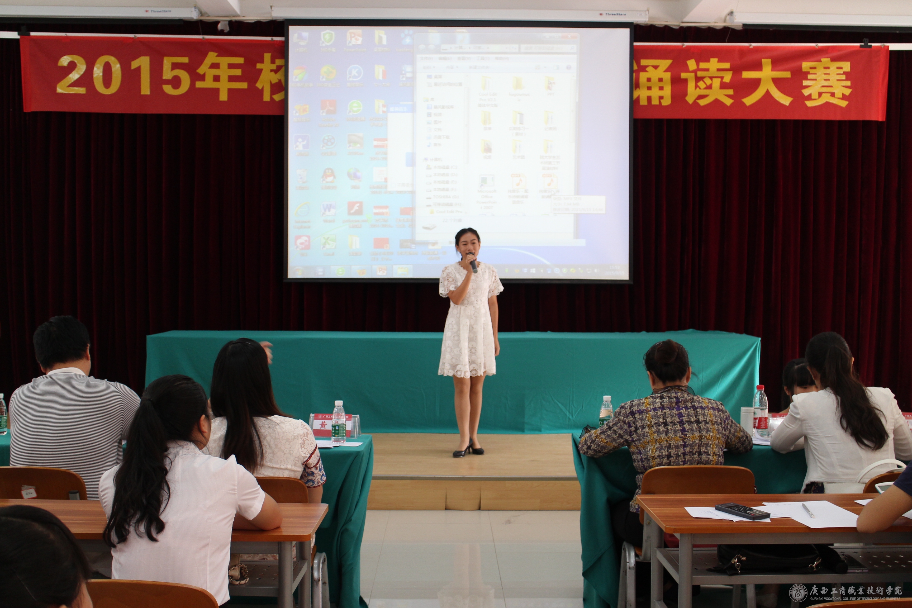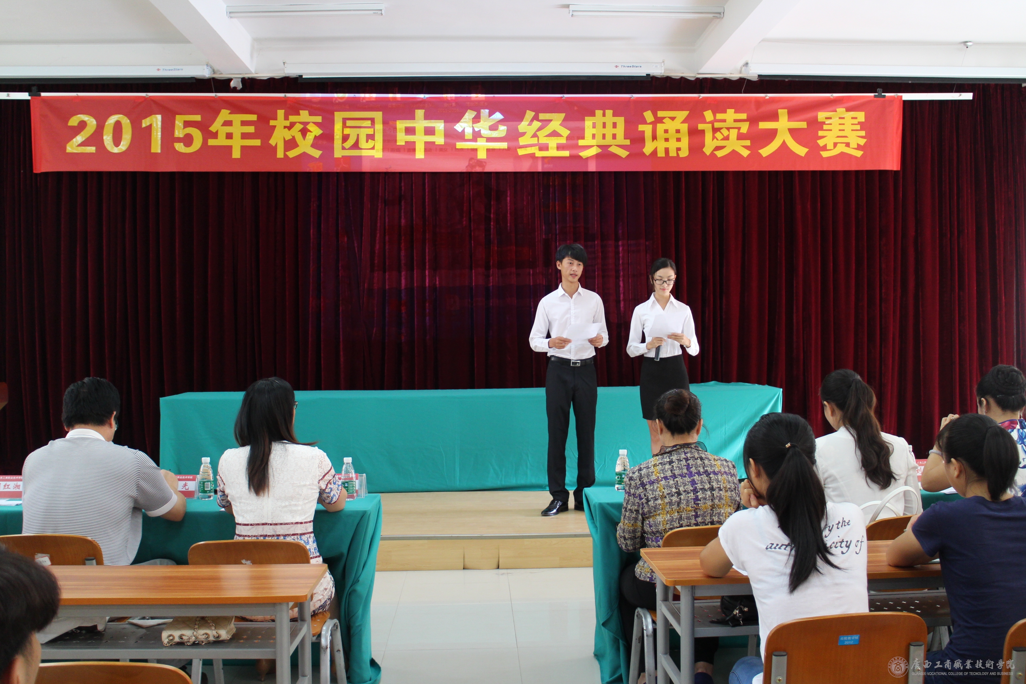 選手們充滿感情的朗誦贏得了觀眾的陣陣掌聲。比賽最后評出一等獎1名,二等獎2名,三等獎4名,優秀獎8名。營策1432班劉行杰同學獲得一等獎,會電1431班覃蕾同學,食檢1432班韋思凡同學獲得二等獎。測試站將選拔部分獲獎選手參加第八屆廣西中華經典誦讀大賽的視頻預賽。期待選手們在今年的比賽中獲得好成績。