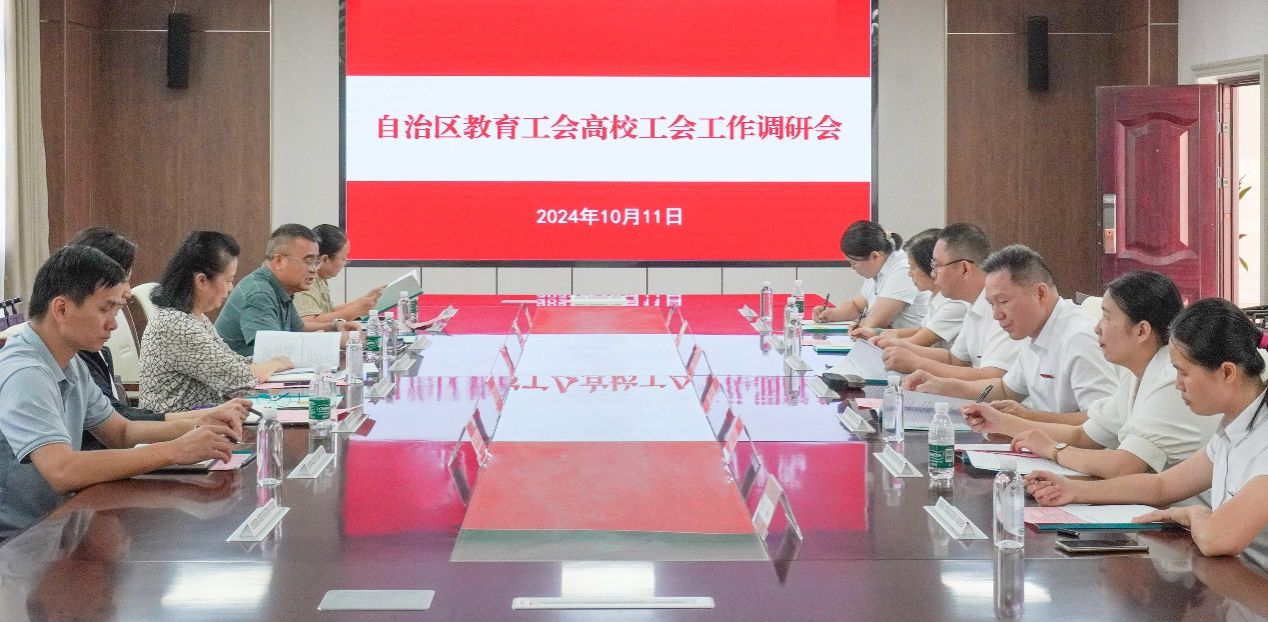 在調研座談會上,陳寧春副校長圍繞我校工會組織架構、工會經費管理、教職工活動陣地建設、規范貫徹執行《廣西壯族自治區教職工代表大會工作規程》情況、勞模工匠培育選樹措施等方面進行了匯報。