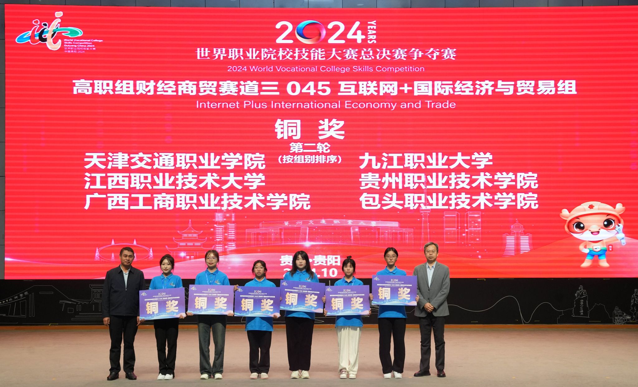 10月27日,2024年世界職業(yè)院校技能大賽總決賽爭(zhēng)奪賽(高職組)財(cái)經(jīng)商貿(mào)賽道“互聯(lián)網(wǎng)+國(guó)際經(jīng)濟(jì)與貿(mào)易”賽項(xiàng)在貴州交通職業(yè)大學(xué)開(kāi)賽,來(lái)自全國(guó)61支隊(duì)伍的237名選手展開(kāi)激烈角逐。我校參賽隊(duì)代表廣西參賽。由我校經(jīng)貿(mào)學(xué)院左瑞瑞、陳淑芬擔(dān)任指導(dǎo)教師,劉菲菲、劉雨宣、梁清睿、王潔4名同學(xué)組成的參賽團(tuán)隊(duì),在本次比賽中表現(xiàn)出色,獲得了2024年世界職業(yè)院校技能大賽總決賽爭(zhēng)奪賽銅獎(jiǎng)。這也是我校在“互聯(lián)網(wǎng)+國(guó)際經(jīng)濟(jì)與貿(mào)易”賽項(xiàng)中首次獲得世界職業(yè)院校技能大賽獎(jiǎng)項(xiàng)。