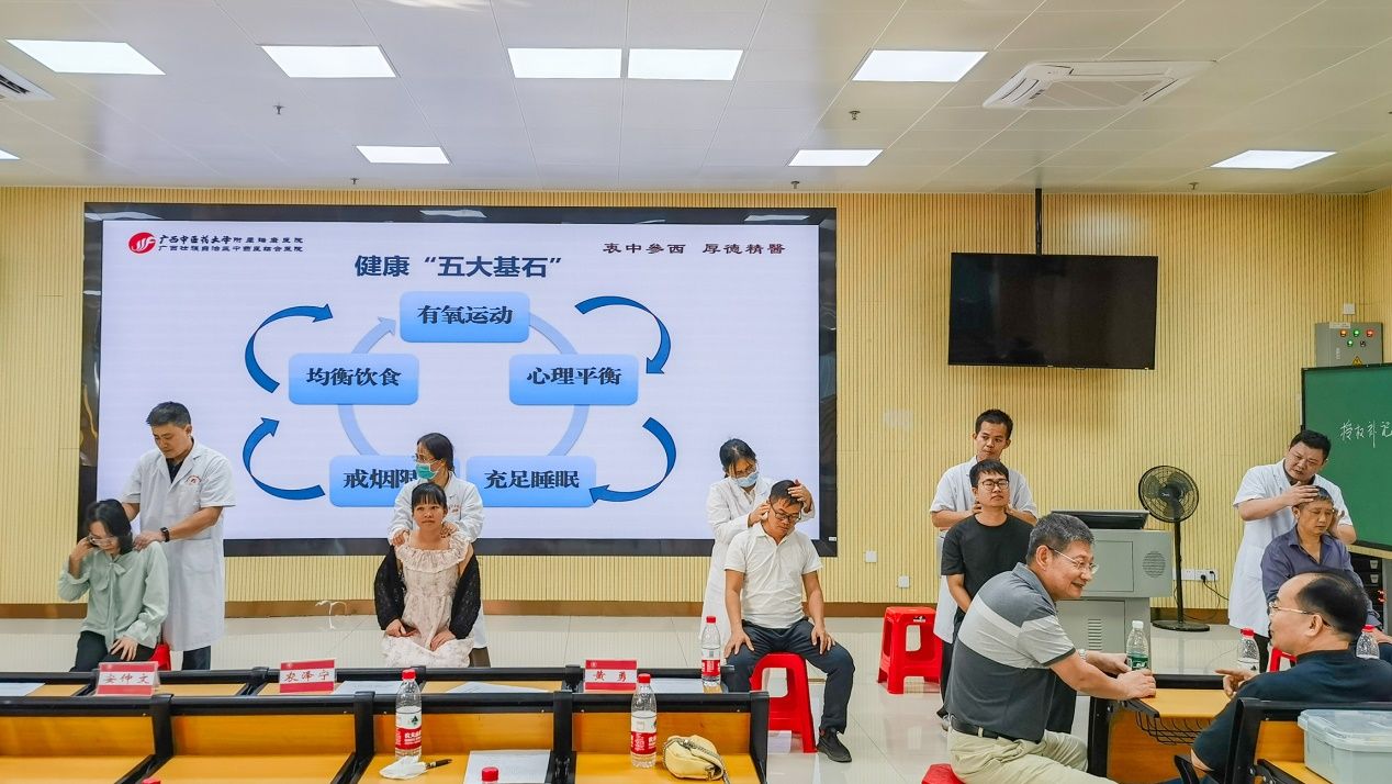 本次活動(dòng)邀請了廣西中醫(yī)藥大學(xué)附屬瑞康醫(yī)院的廣西名中醫(yī)、國家優(yōu)秀中醫(yī)臨床人才、全國名老中醫(yī)藥專家李廷冠教授學(xué)術(shù)經(jīng)驗(yàn)繼承人等專家為我校教職工會(huì)員健康體檢結(jié)果咨詢、進(jìn)行義診、現(xiàn)場治療、健康保健講座等。