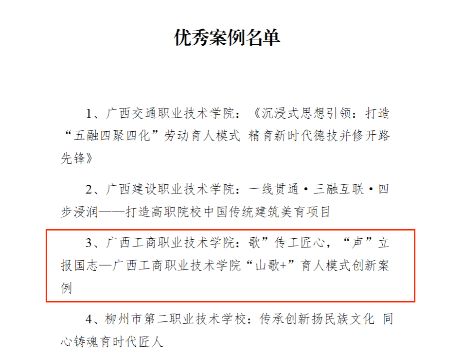 近日,自治區教育廳公布了2024年全區“技能成才 強國有我”系列教育活動作品等次評定結果,我校在此次活動中表現優異,共推薦319項作品和2個典型案例入圍區賽。經過激烈角逐,我校斬獲佳績:34項作品榮獲一等獎,68項作品榮獲二等獎,105項作品榮獲三等獎,《“歌”傳工匠心,“聲”立報國志——廣西工商職業技術學院“山歌+”育人模式創新案例》榮獲優秀典型案例。此外,學校還榮獲優秀組織獎,充分展現了我校在技能教育和人才培養方面的成果。