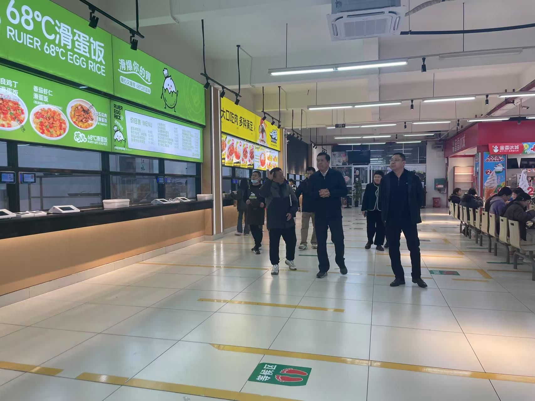 在食堂,李維書記一行深入商業區、食堂外立面、就餐區域等,對食堂周邊及內部衛生、宣傳等環節進行嚴格檢查,要求后勤管理處督促食堂工作人員務必將食品安全意識放在首位,嚴格把控食品質量,規范操作流程,為師生提供安全、衛生、可口的餐飲服務。