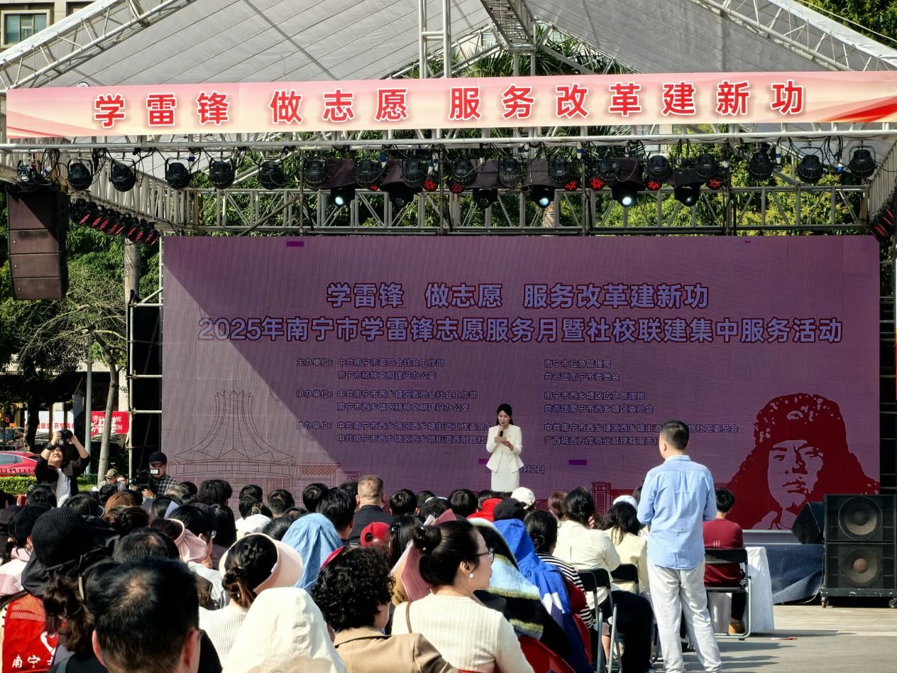 在第62個學雷鋒紀念日來臨之際,為更好地弘揚雷鋒精神,推動志愿服務活動的廣泛開展,2025年3月2日,中共南寧市委員會社會工作部聯合相關部門,在西鄉塘區成功舉辦“2025年南寧市三月學雷鋒活動月集中志愿服務暨社校聯建洽談活動”。我校信息與設計學院“藝述繪”青年志愿服務隊作為受邀單位參與活動。
