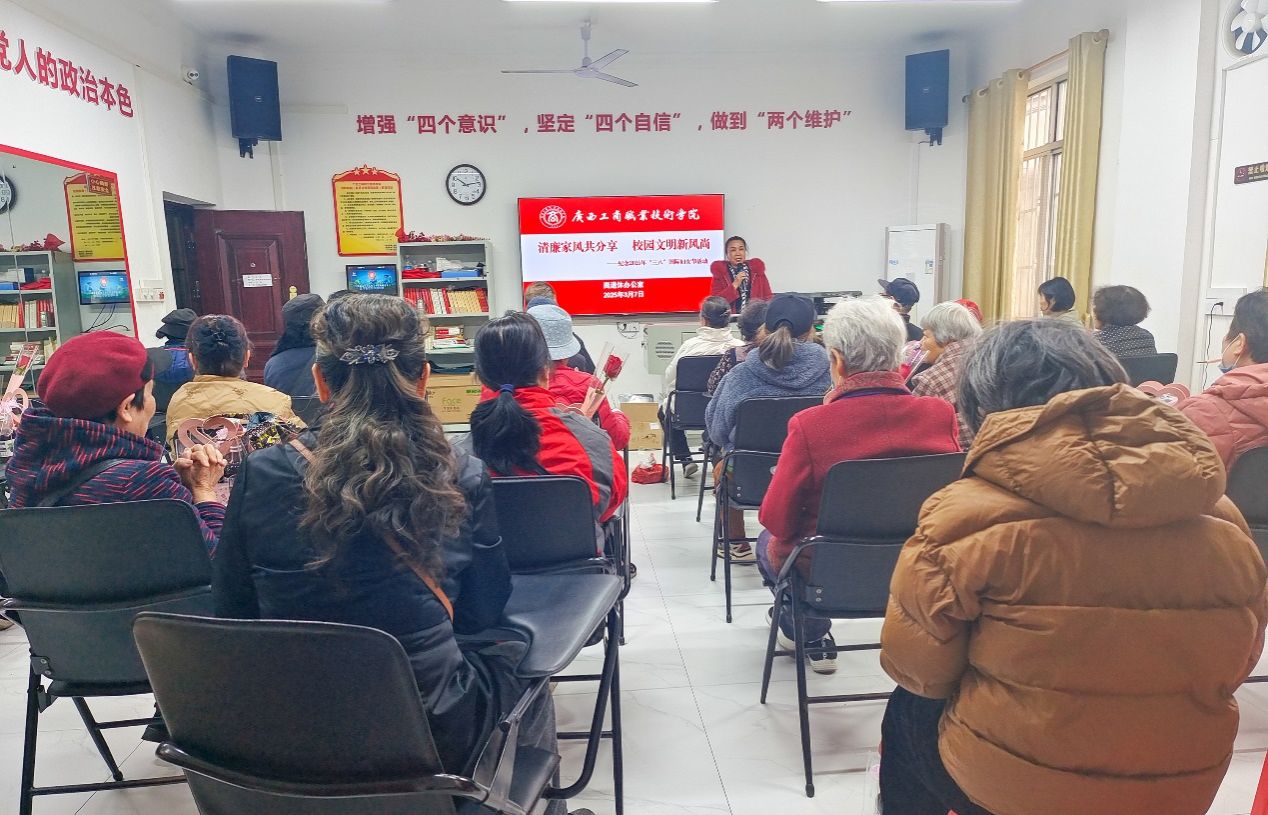 此外,學校還開展了“清廉家風共分享 校園文明新風尚”分享活動。在分享會上,退休女教職工代表輪流上臺,結合自身的親身經歷,分享了她們關于清廉家風的故事和感悟,講述了女性在清廉家風方面如何影響家庭成員的言行舉止,以及如何在日常生活中踐行清廉原則。這些生動的故事不僅讓人深受啟發,更傳遞了清廉家風對于個人成長、家庭和諧以及校園文明的重要性。