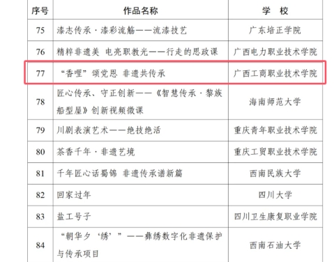 近日,教育部辦公廳公布了2024年高校“禮敬中華優(yōu)秀傳統(tǒng)文化”宣傳教育活動優(yōu)秀作品名單,我校報送的作品《“香哩”頌黨恩 非遺共傳承》入選“百物匠心”非遺技藝傳承創(chuàng)新視頻微課名單。該作品后續(xù)將通過央視網(wǎng)、新華網(wǎng)、中國教育發(fā)布等平臺進行專題宣傳展示。