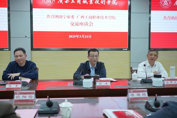 座談會上,劉進校長代表學(xué)校對共青團南寧市委一行表示熱烈歡迎,并詳細介紹了學(xué)校辦學(xué)歷史與育人特色。他表示,學(xué)校將以此次合作為契機,與共青團南寧市委共筑“紅色育人”新高地、共建“政-企-校”聯(lián)動機制和共育青年成長“生態(tài)圈”,將糧食安全、人工智能等特色領(lǐng)域融入人才培養(yǎng),為首府經(jīng)濟社會發(fā)展輸送更多高素質(zhì)青年人才。