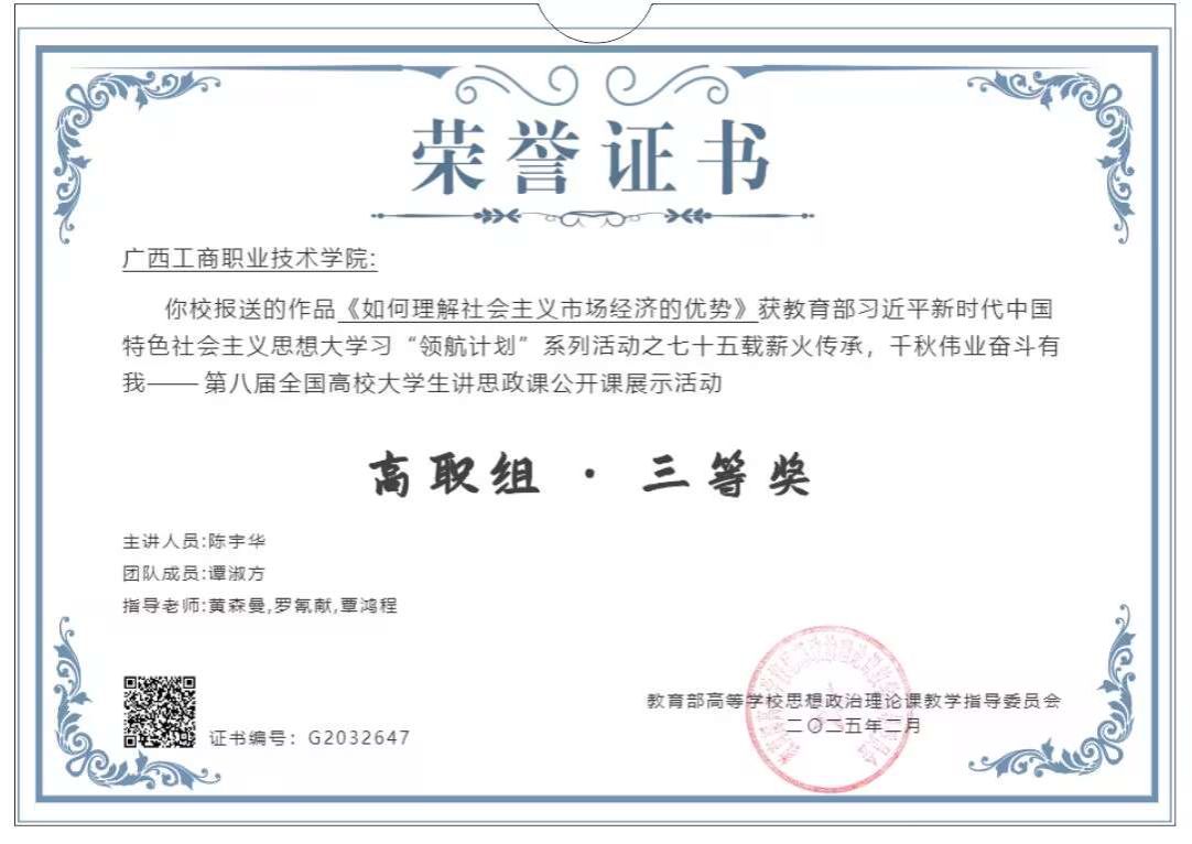 由教育部高等學校思想政治理論課教學指導委員會主辦的“七十五載薪火傳承,千秋偉業奮斗有我”——第八屆全國高校大學生講思政課公開課展示活動和“我心中的思政課”——第八屆全國高校大學生微電影展示活動圓滿結束,我校馬克思主義學院黃森曼老師團隊指導的《如何理解社會主義市場經濟的優勢》和陶艷蘭老師團隊指導的《石牌新韻》2個作品入圍國賽,經過角逐,均榮獲三等獎。這是我校第三年獲此榮譽。