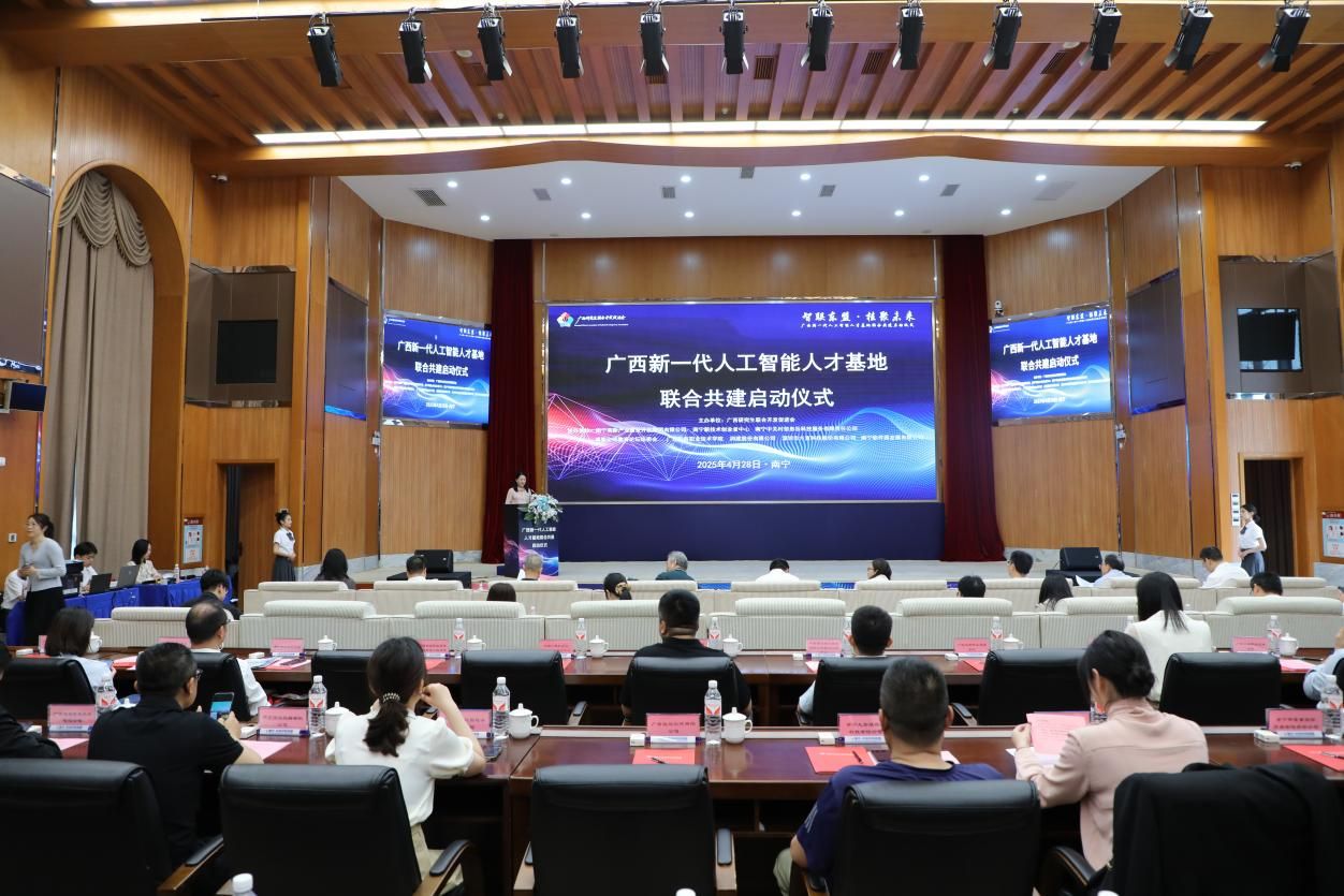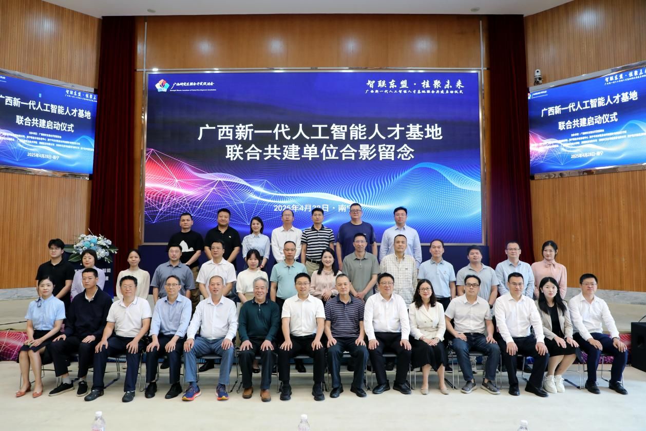 為深入貫徹落實國家《新一代人工智能發展規劃》及廣西壯族自治區“數字強區”戰略部署,建立產、科、教、人一體化數字產業人才培育體系,2025年4月28日,廣西新一代人工智能人才基地聯合共建啟動儀式在南寧高新區中關村創新示范基地舉行。來自全區 40 家政、產、學、研、金、用單位代表共同簽署《聯合共建聲明》,標志著廣西在人工智能人才培養、技術創新與產業融合領域邁出關鍵性一步,正式開啟面向東盟的數字經濟人才高地建設新征程。我校作為共建單位之一簽署《聯合共建聲明》,并協辦此次啟動儀式。