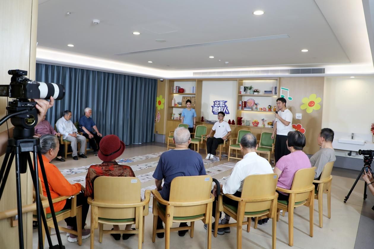 在錄制現場,我校智慧健康養老服務與管理專業的同學們與另外2所高職院校的同學組成康養小隊,分為活動策劃組和護理保健組,以真人秀形式進行節目錄制?;顒硬邉澖M的同學們帶領養老中心的老人們一起做游戲、唱歌、節目表演等,提高老人們的精神愉悅感;護理保健組的同學們為老人們進行推拿、復健等不同的醫療保健項目,提高老人們的身體健康水平。節目順利完成錄制,錄制過程十分活潑有趣,歡呼聲、笑聲縈繞在現場,充分展現了我校學子的專業能力。