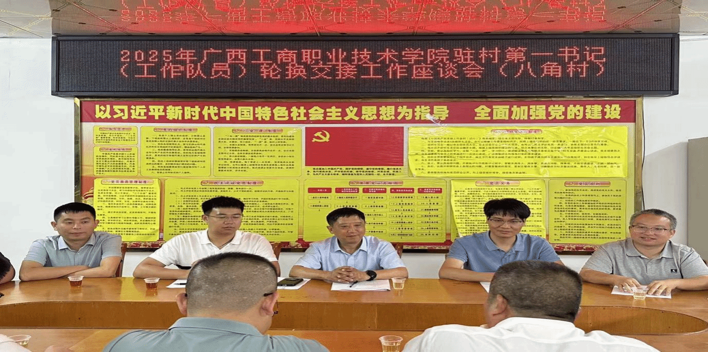 抵達目的地后,校領導一行分別與駐村村委領導班子、駐村第一書記和工作隊員召開交流座談會。會上,學校領導詳細介紹了學校情況及新選派駐村工作隊員的專業特長與工作優勢,認真聆聽原駐村第一書記的工作匯報,深入了解幫扶村當前的發展現狀。學校領導表示,希望新選派的第一書記和工作隊員在接下來的駐村工作中,強化責任,不負組織重托,以高度的責任心和使命感接穩接力棒,跑好接力賽,做到鄉村振興工作責任不缺位、工作不斷檔、力度不減弱,帶領本村實現產業振興、人才振興、文化振興、生態振興、組織振興,續寫鄉村振興新篇章。新老隊員紛紛表示,嚴格落實交接的各項工作任務,以高度的責任感和使命感推動幫扶工作見實效,為陸川縣鄉村振興注入新動力。