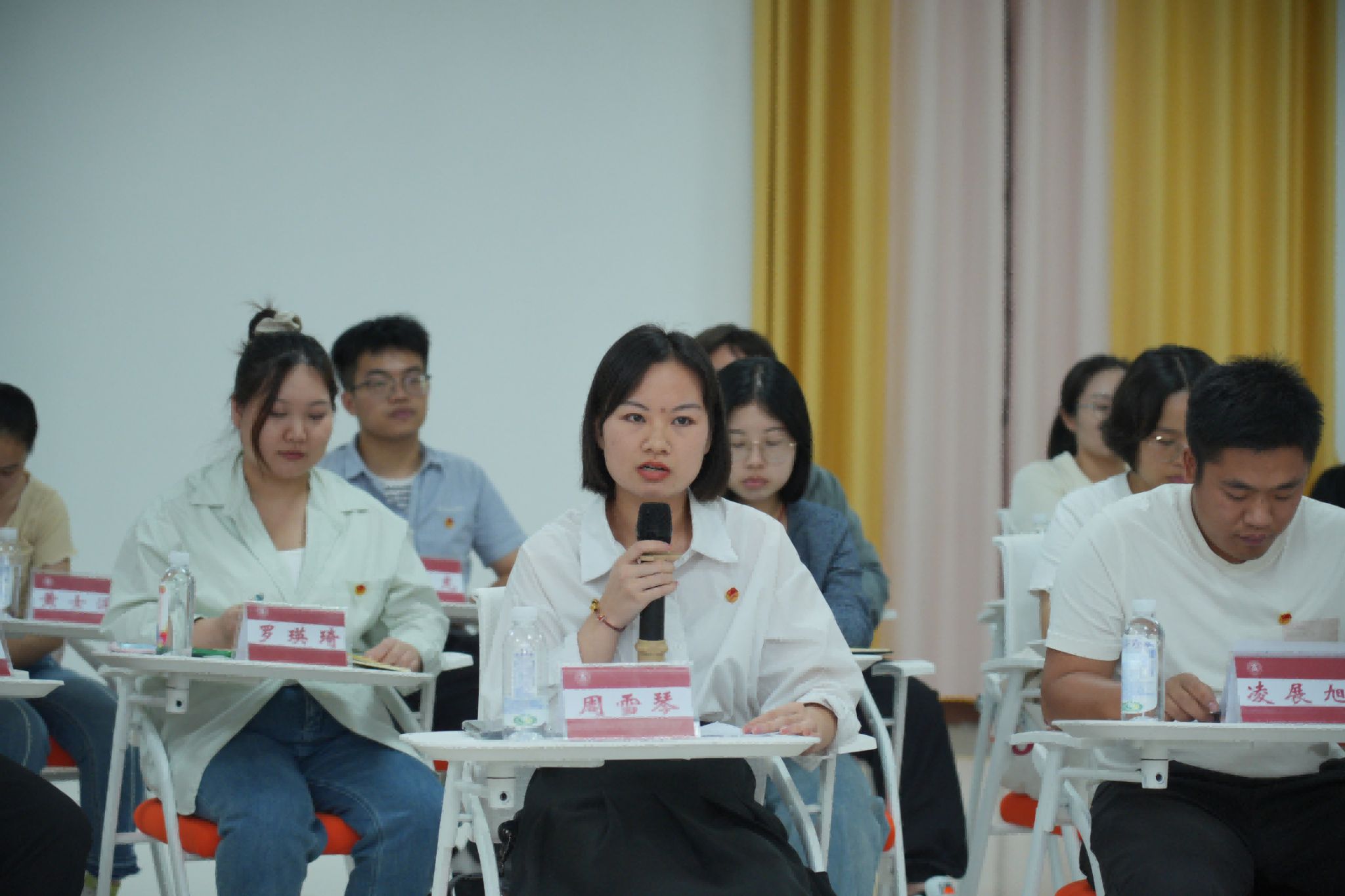 2025年5月27日,學(xué)校青年教職工團支部在武鳴校區(qū)大學(xué)生活動中心青年之家開展“青衿之志 履踐致遠(yuǎn)”系列活動之——“清廉新坐標(biāo):作風(fēng)建設(shè)青年說”主題團日活動。學(xué)校黨委書記李維、學(xué)校黨委副書記安仲文出席活動,校團委副書記朱焰、青年教職工團支部書記潘力銘及40余名青年團員教師代表參加。