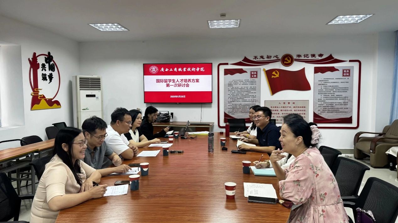 2025年5月28日,國際留學生人才培養方案研討會在鵬飛校區召開。教務科研處(國際交流合作處)有關負責同志、糧油與管理學院物流教研室主任、工商教研室主任、經貿與康旅學院專業帶頭人、通識學院藝文教研室主任、教務科研處(國際交流合作處)相關工作人員參會,共同探討如何構建更加科學、全面且具有國際視野的人才培養體系,以適應全球化背景下對國際人才的需求。