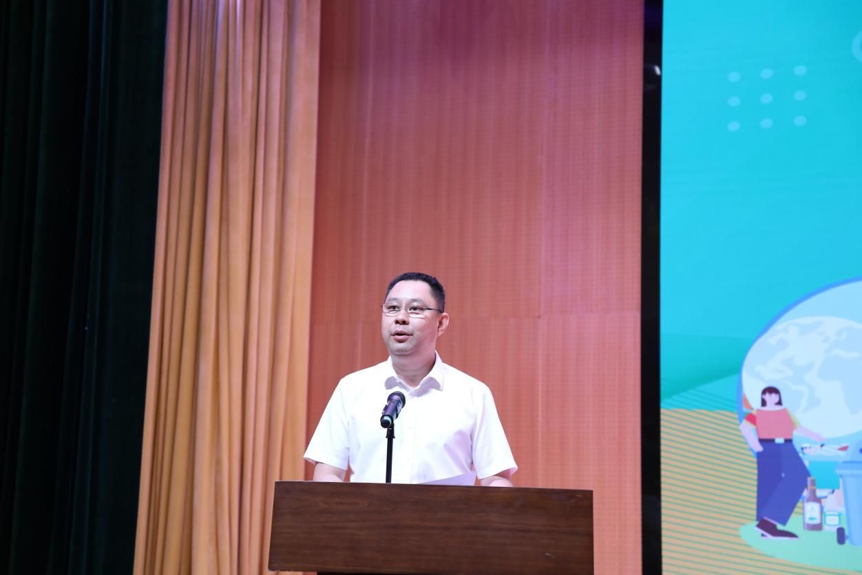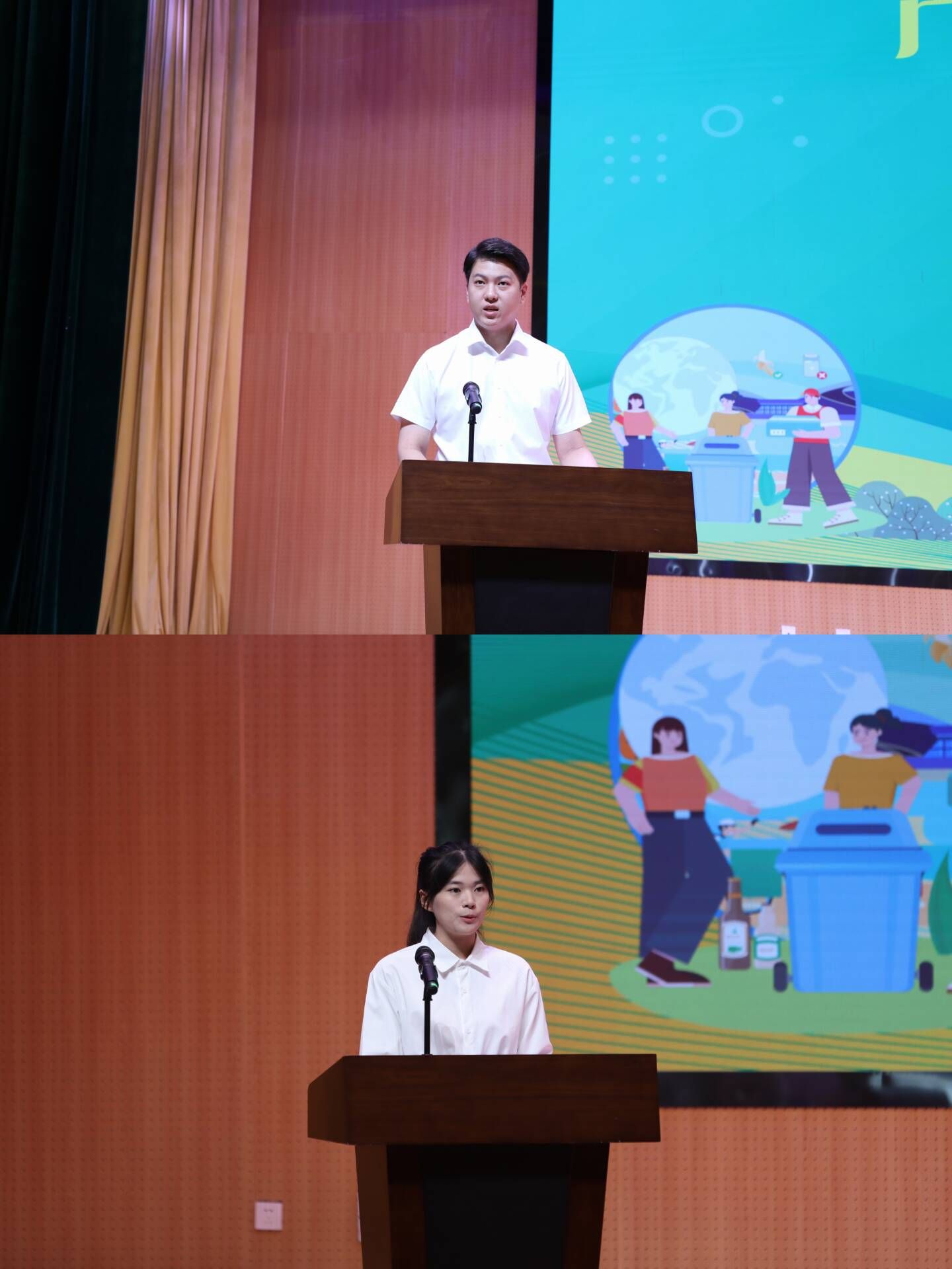 我校教師代表崔鵬飛上臺發言,結合教學、科研和社會實踐,分享了如何引導學生樹立正確的垃圾分類觀念,激發學生從“知”到“行”的綠色自覺;學生代表鄧琳上臺發言,表示將積極參與垃圾分類,爭做垃圾分類的倡導者和綠色生活的踐行者,為建設美麗校園、建設壯美廣西貢獻自己的一份力量。