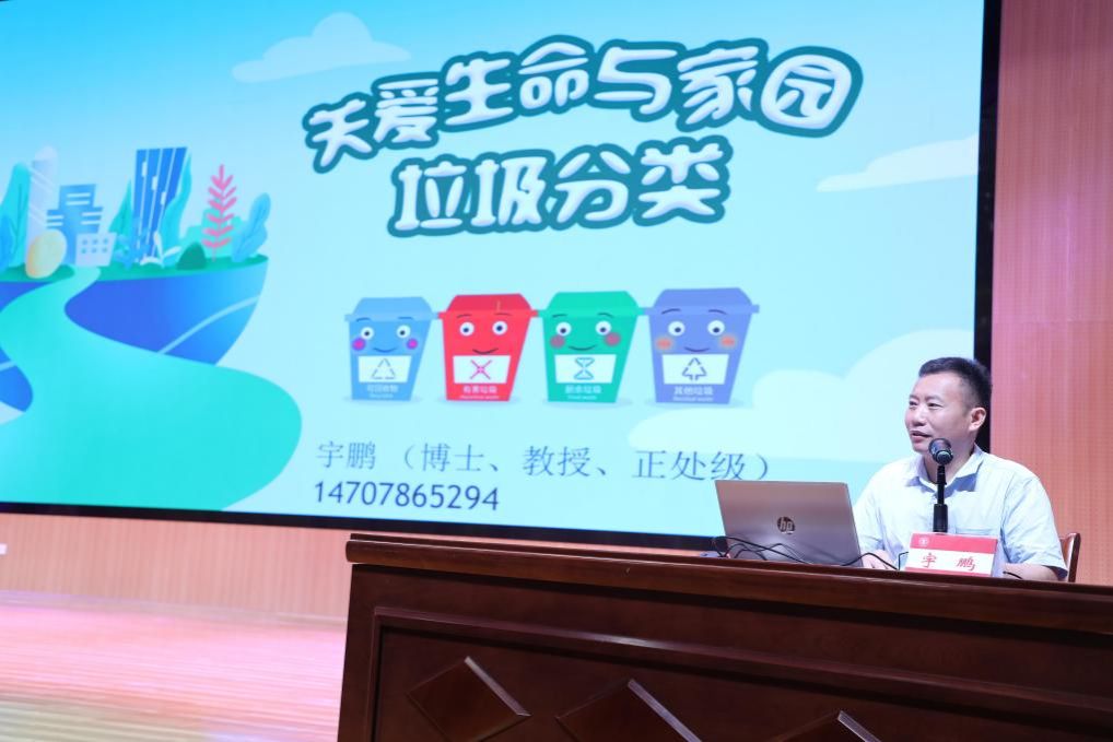 活動邀請了南寧師范大學教授宇鵬作題為《關愛生命與家園-垃圾分類》專題講座。他分享了垃圾分類的總體成效、開展垃圾分類的原因、國內垃圾分類的現狀、垃圾分類對策等內容,和與會人員探討學校垃圾分類的實施和管理措施。
