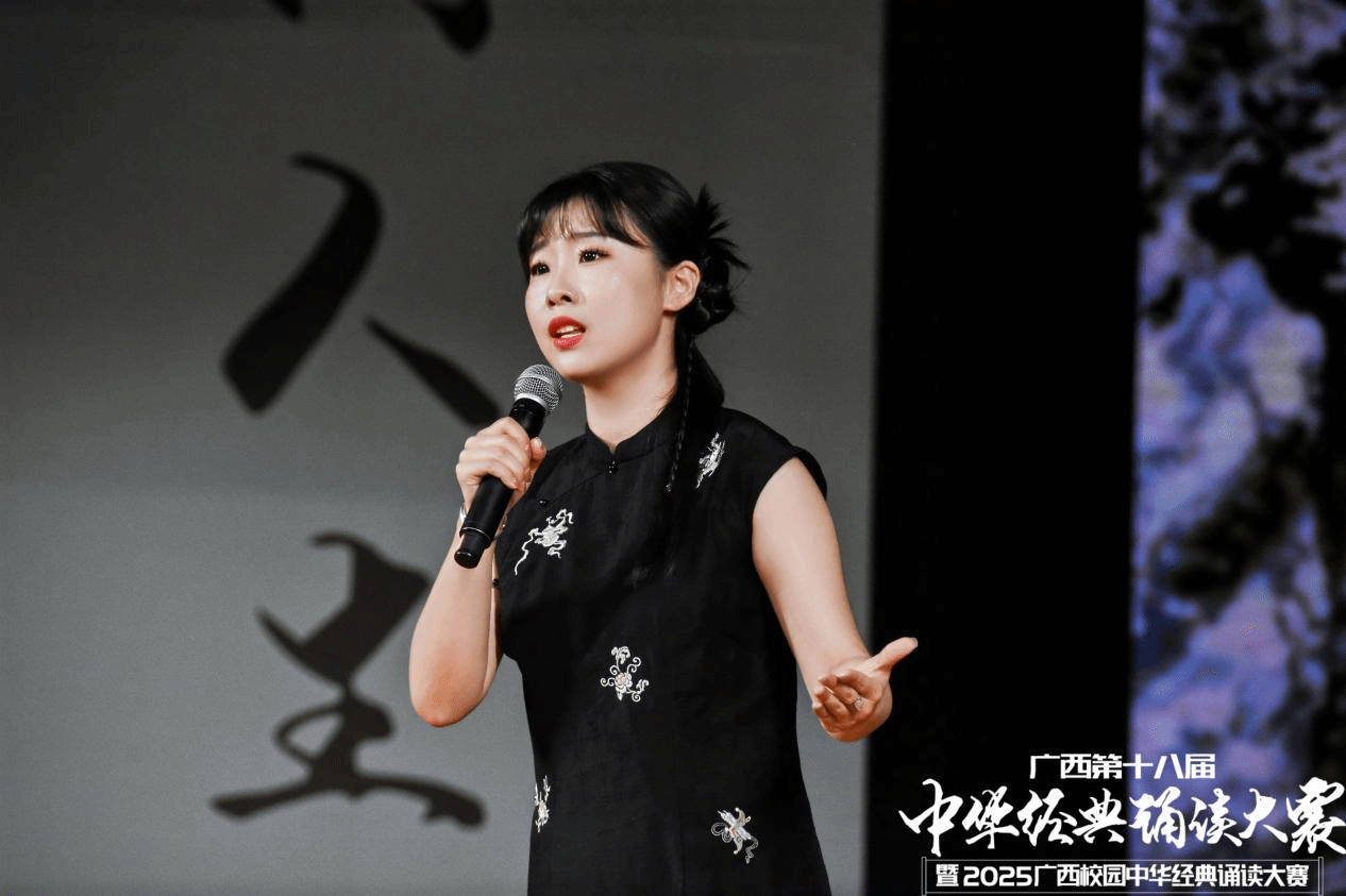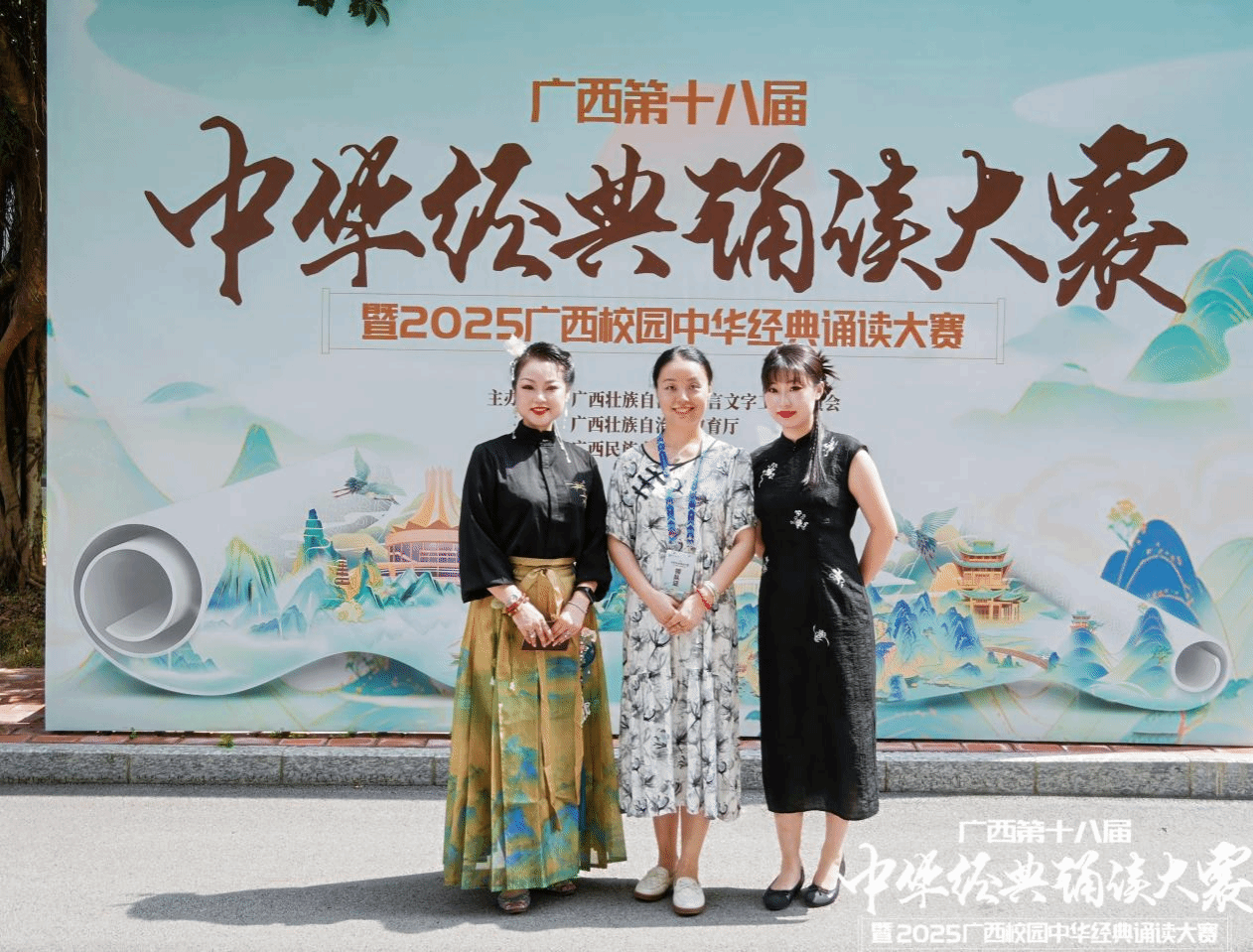 6月14日——16日,由自治區(qū)教育廳、自治區(qū)語委主辦的"廣西第十八屆中華經(jīng)典誦讀大賽暨2025廣西校園中華經(jīng)典誦讀大賽"現(xiàn)場總決賽在廣西民族大學(xué)思源湖校區(qū)圓滿落幕。我校精心組織師生團(tuán)隊(duì)參賽,通過精彩演繹展現(xiàn)中華經(jīng)典的文化魅力,獲得評委與觀眾高度贊譽(yù)。
