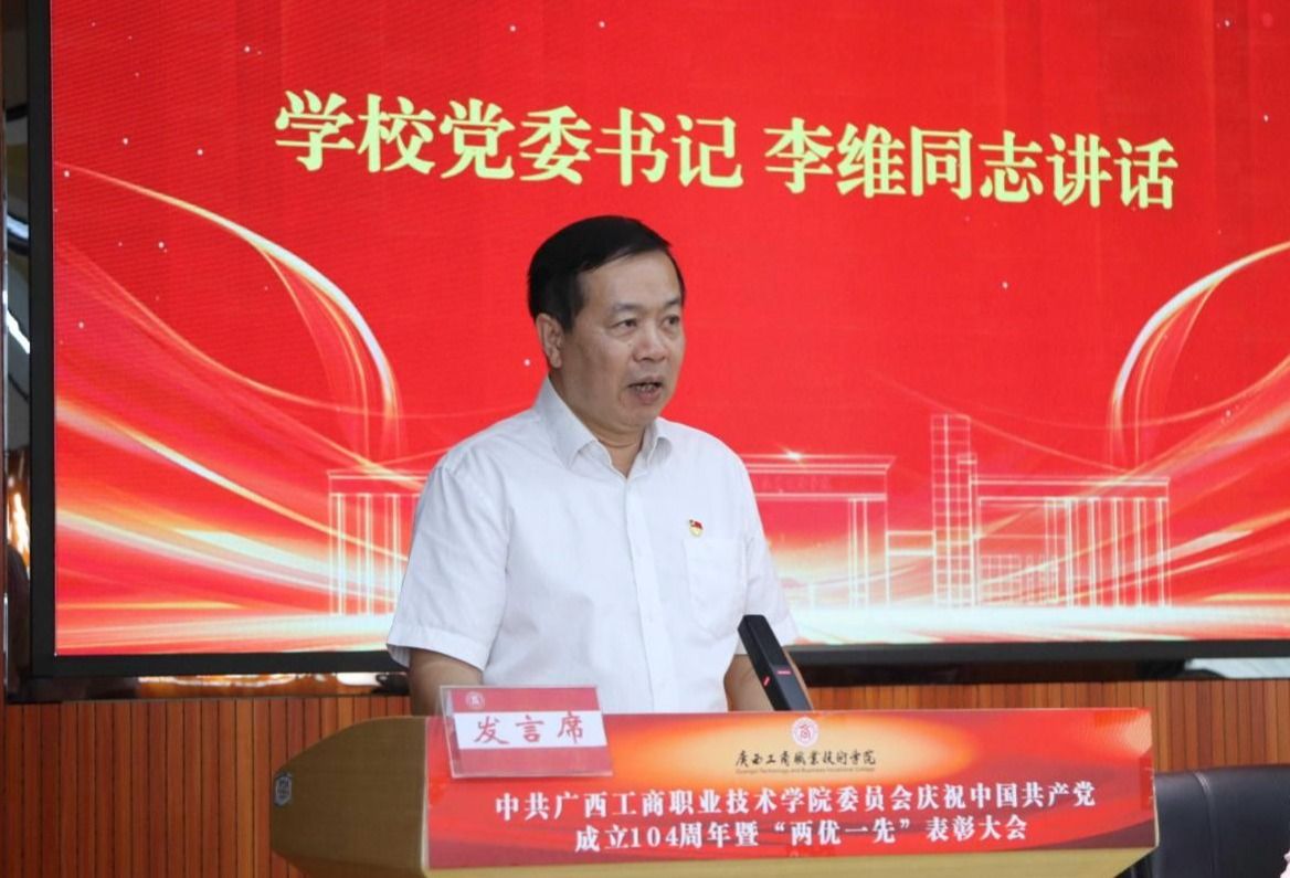 為慶祝中國共產(chǎn)黨成立104周年,回顧黨的光輝歷程,弘揚黨的優(yōu)良傳統(tǒng),表彰先進(jìn)、樹立典型,展示新時代共產(chǎn)黨人的良好形象和精神面貌,7月1日,學(xué)校召開慶祝中國共產(chǎn)黨成立104周年暨“兩優(yōu)一先”表彰大會。學(xué)校黨委書記李維,黨委副書記、校長劉進(jìn),黨委副書記安仲文,黨委副書記、紀(jì)委書記韋云鳳,副校長陳寧春、鄭華,部分教職工黨員,新發(fā)展黨員代表,離退休黨員代表在主會場參加會議,其余教職工黨員在分會場參會。大會由劉進(jìn)主持。