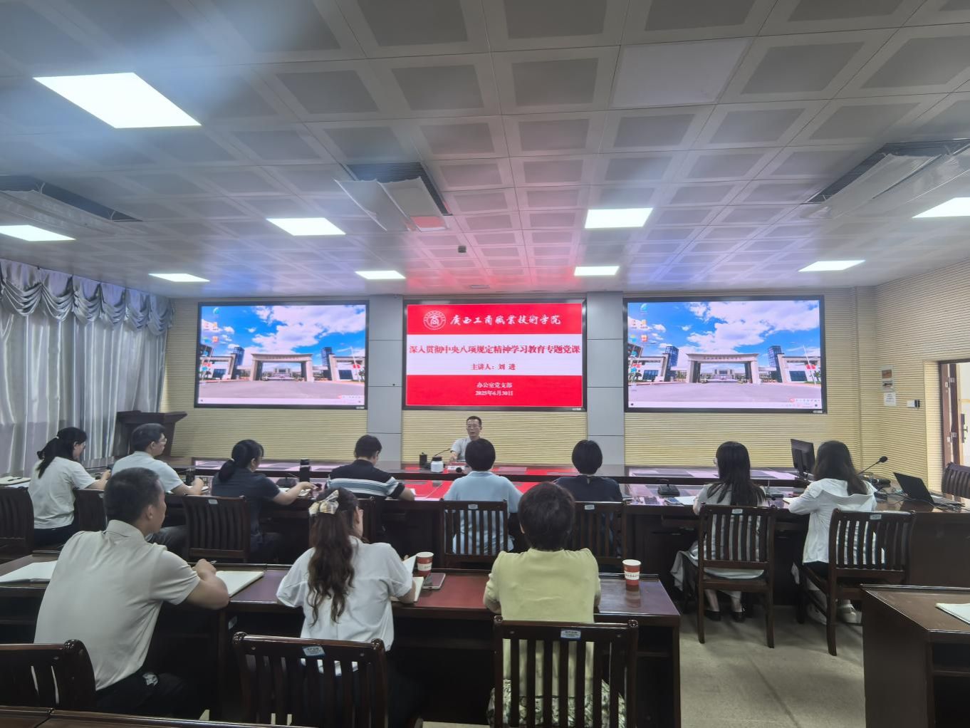6月30日,學校黨委副書記、校長劉進到基層黨組織開展深入貫徹中央八項規定精神學習教育專題黨課,學校辦公室黨支部全體黨員參加活動。