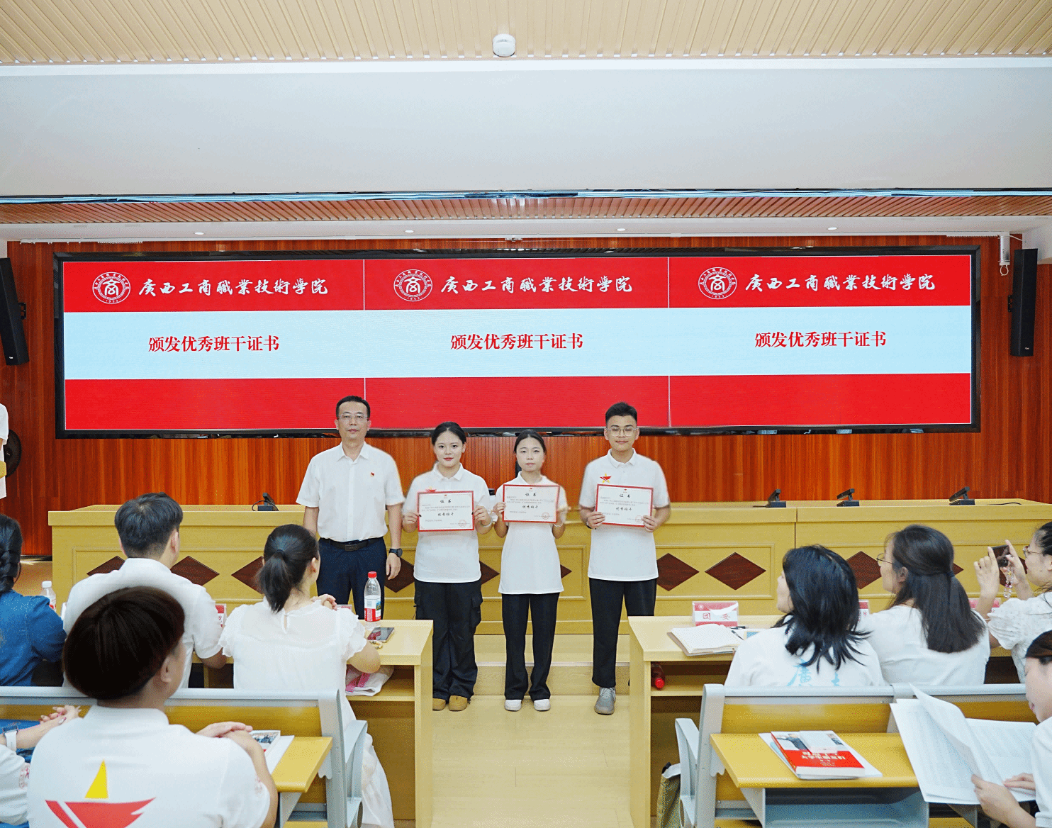 (學校黨委副書記、校長劉進為學員頒發優秀班干證書)