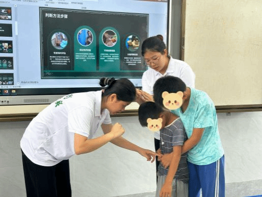 圖為“點亮荷城留守星光,暖心灑播糧安種子”社會服務踐行團進行海姆立克急救培訓