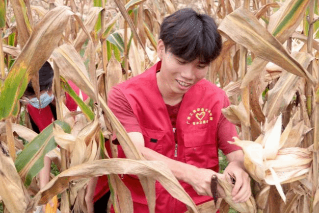 圖為“‘禾’你有約,‘糧’心守護”服務團成員幫村民摘玉米