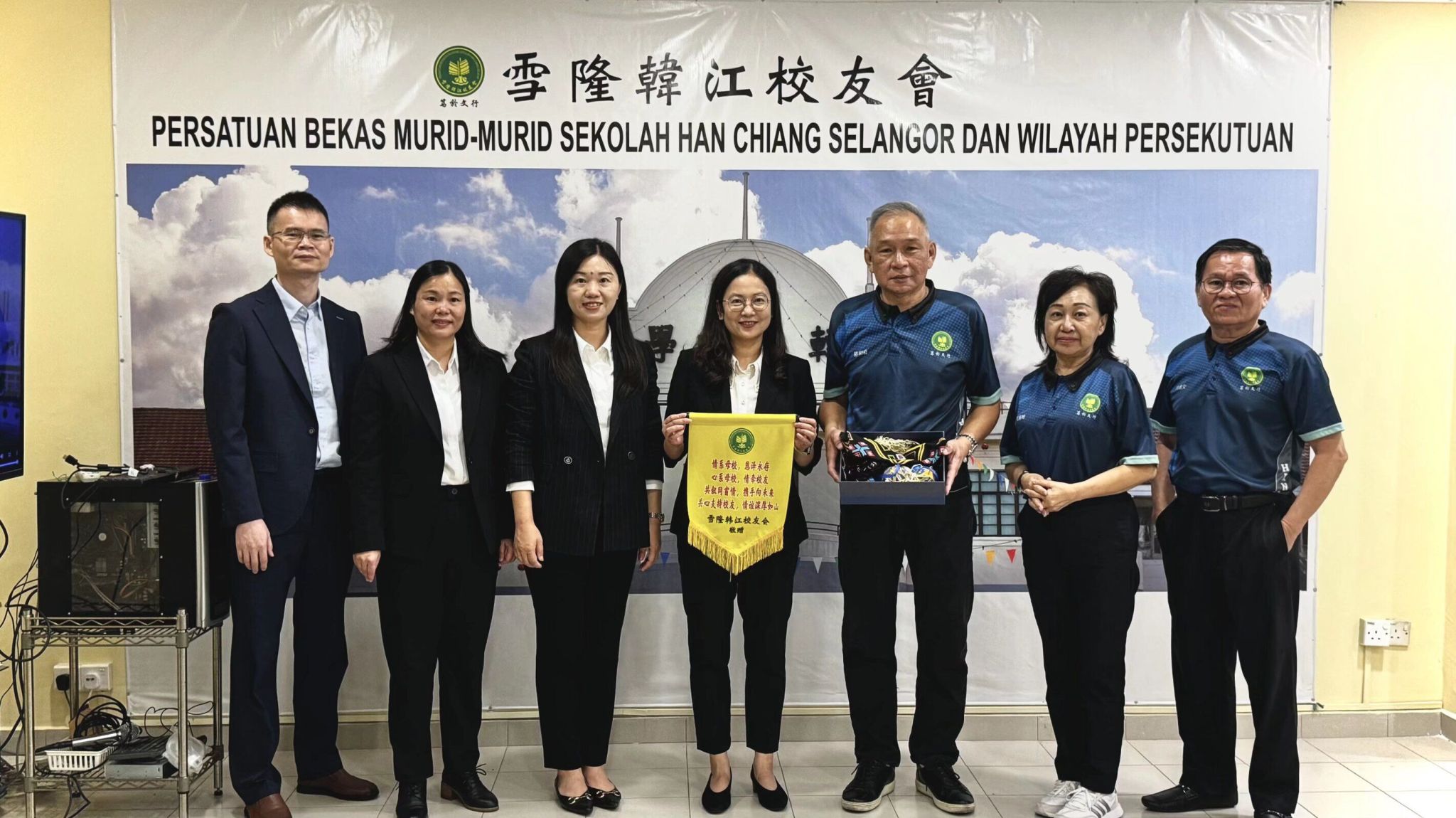 在雪隆韓江校友會,代表團與校友會會長駱福榮先生、執行秘書雪立女士、總務伍莉明女士、洪建安先生等代表座談。雙方先介紹各自發展情況,隨后圍繞我校面向華語中學的招生專業、留學模式、升學資格及獎學金政策深入洽談,達成招生合作與師生互訪意向,期待共同推動馬來西亞華人學生赴我校留學項目落地。