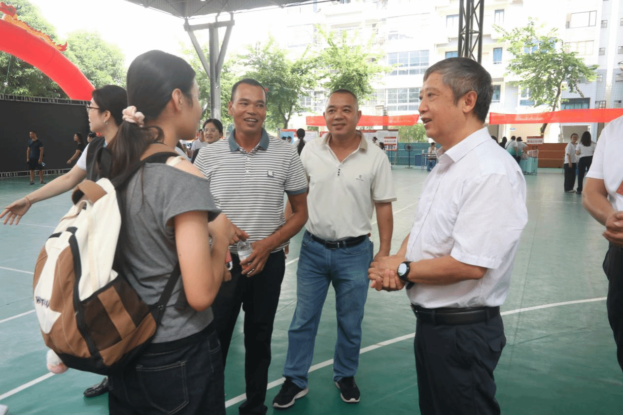 (學校副校長闕勇平(右三)在武鳴校區與新生交談)
