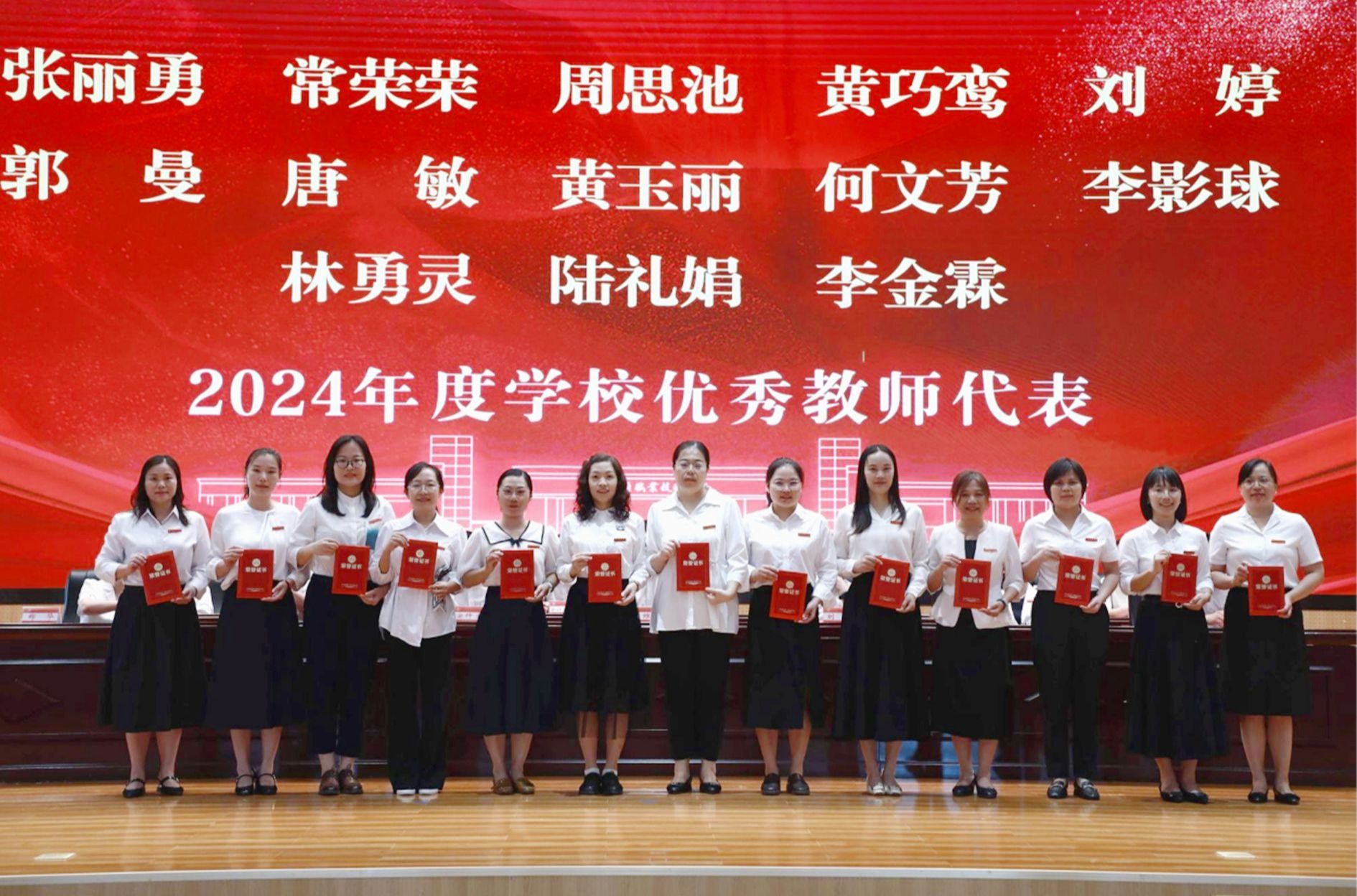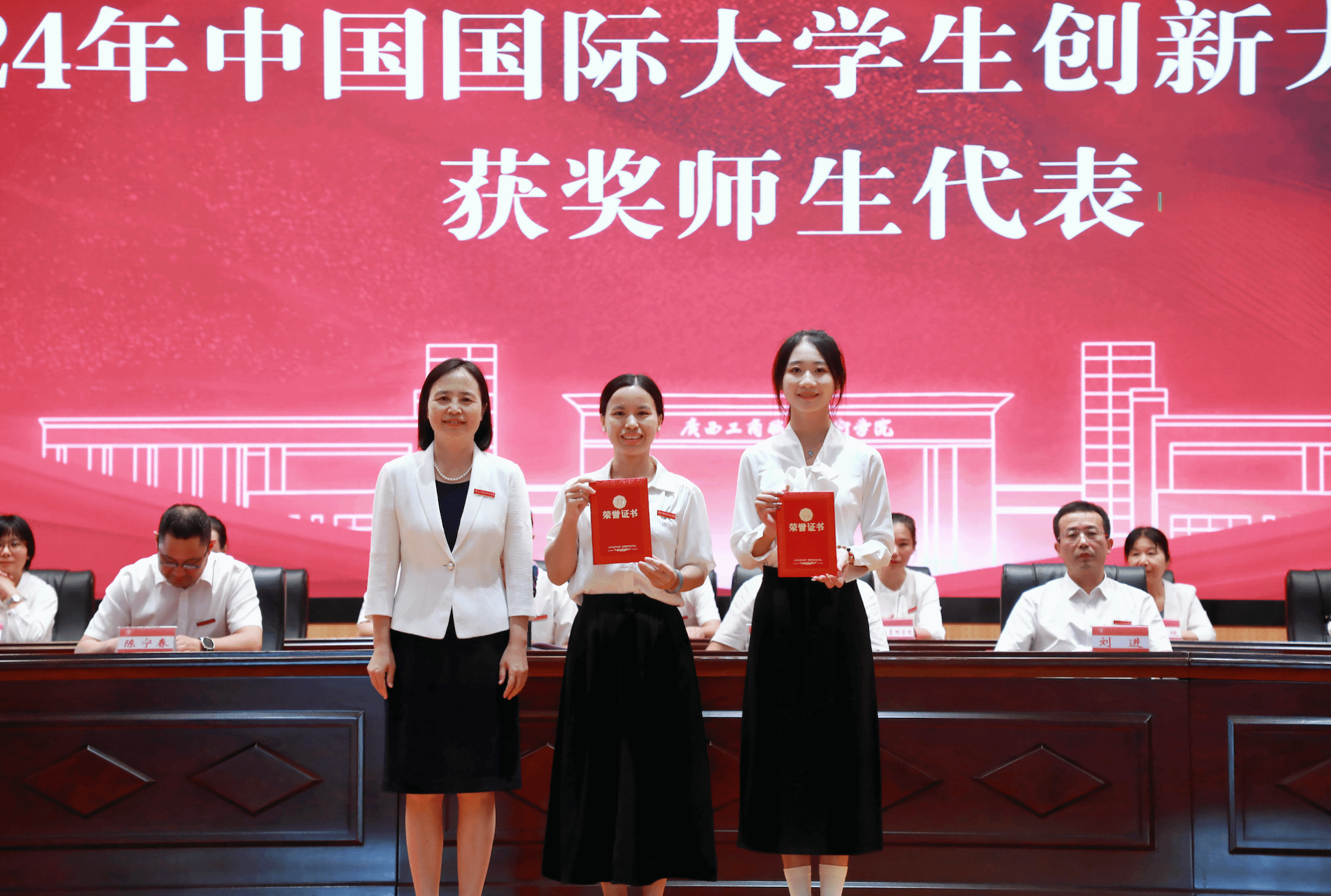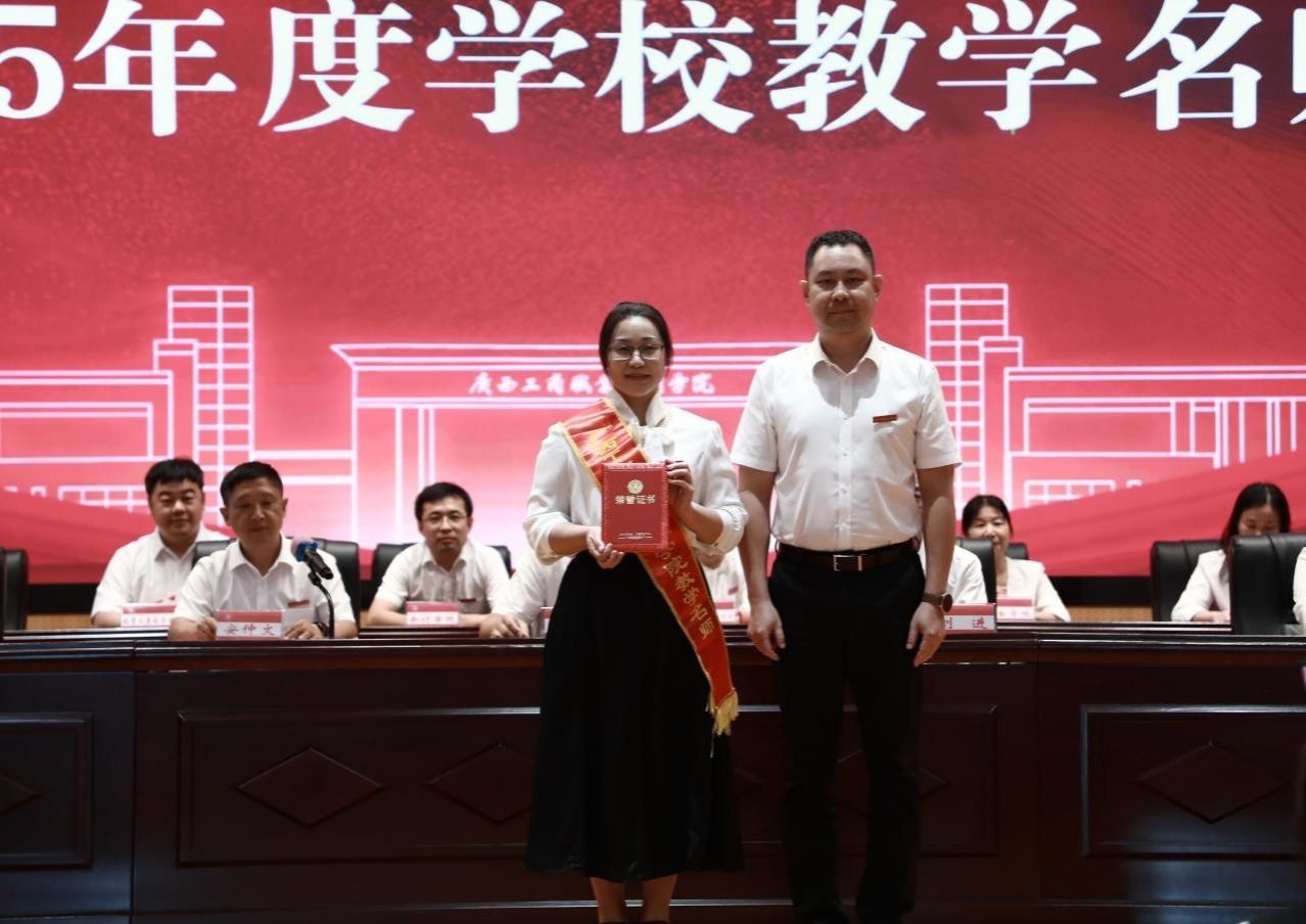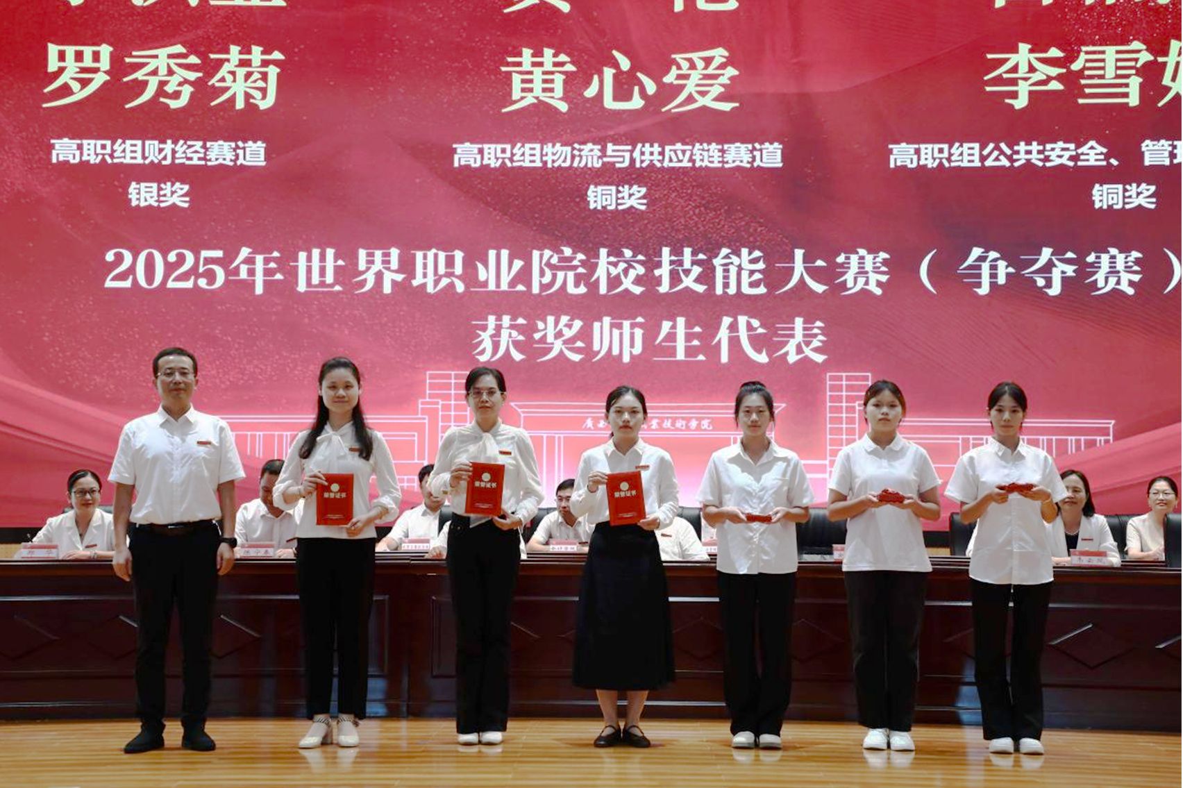 大會對學校2024年度學校優秀教師和優秀教育工作者代表、2025年度學校教學能手、2025年度學校教學名師、2024年中國國際大學生創新大賽獲獎師生代表、2025年世界職業院校技能大賽(爭奪賽)獲獎師生代表、2024年度廣西技術能手進行了表彰。