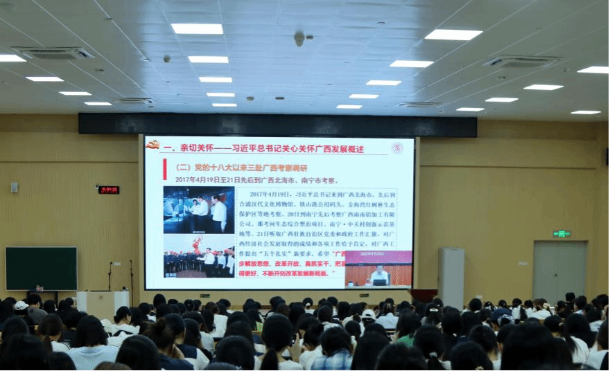 李維書記在宣講報告中指出,習近平總書記對廣西工作高度重視,多次親臨廣西考察調研,多次就廣西工作發表重要講話、作出重要指示批示,深刻闡明了事關廣西發展全局的根本性、方向性、戰略性問題,為建設新時代壯美廣西樹立了新的歷史坐標、提供了新的戰略指引。他強調,學校經過70多年的接續奮斗,各項建設走上高質量發展的快車道。學校黨委將進一步全面深化改革、開拓創新、砥礪奮進,牢固樹立“實干為要、創新為魂,用業績說話、讓人民評價”的鮮明導向,圍繞落實立德樹人根本任務,堅持提質量、強效能、穩保障、惠民生,提高辦學水平、增強綜合實力、實現學校高質量發展。他勉勵學校學子,要牢記習近平總書記殷切囑托,堅定不移聽黨話、跟黨走,爭做有理想、敢擔當、能吃苦、肯奮斗的新時代好青年,在推進強國建設、民族復興偉業中展現作為、彰顯風采、貢獻力量,奮力書寫中國式現代化廣西篇章的青春答卷。