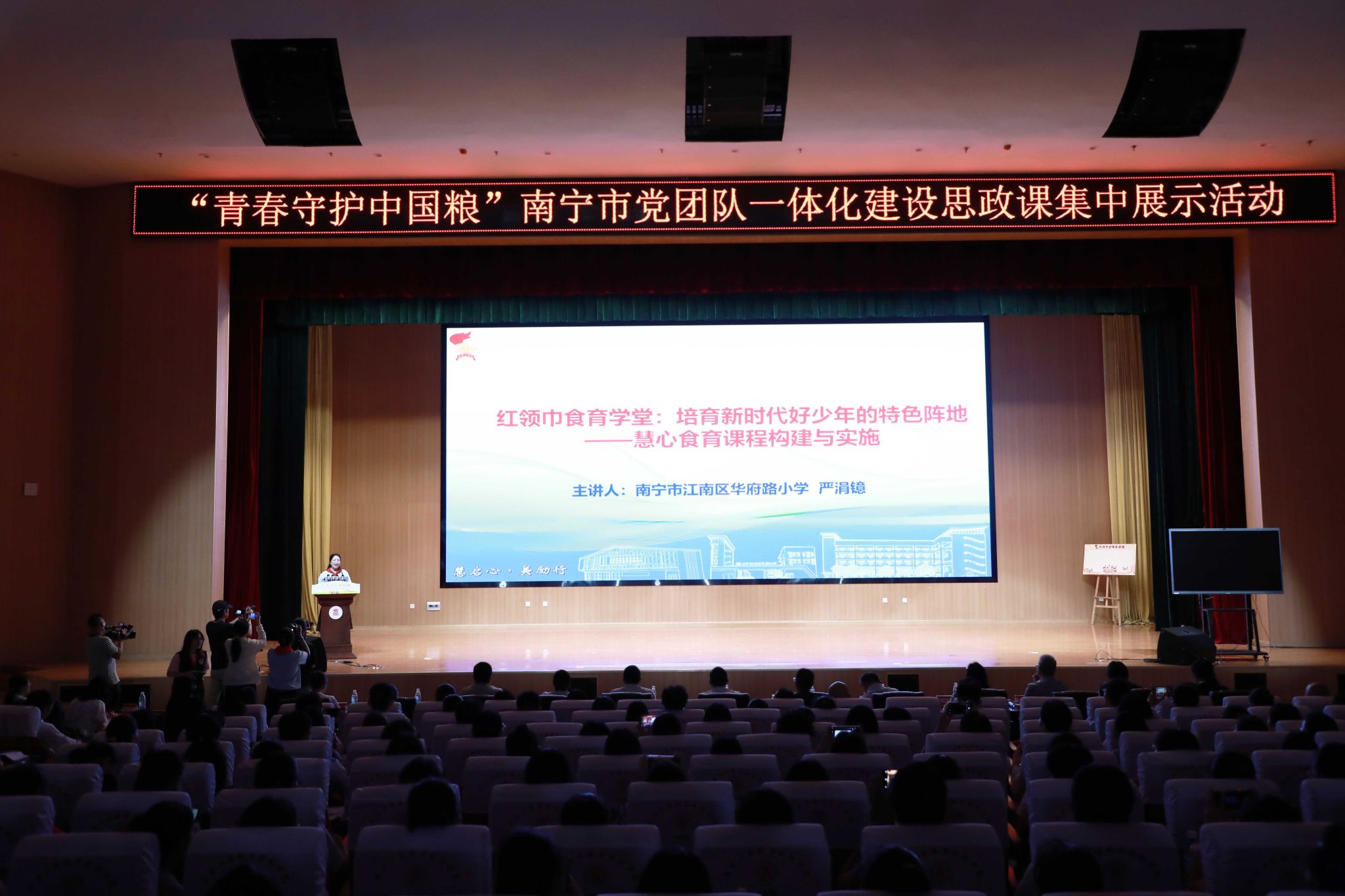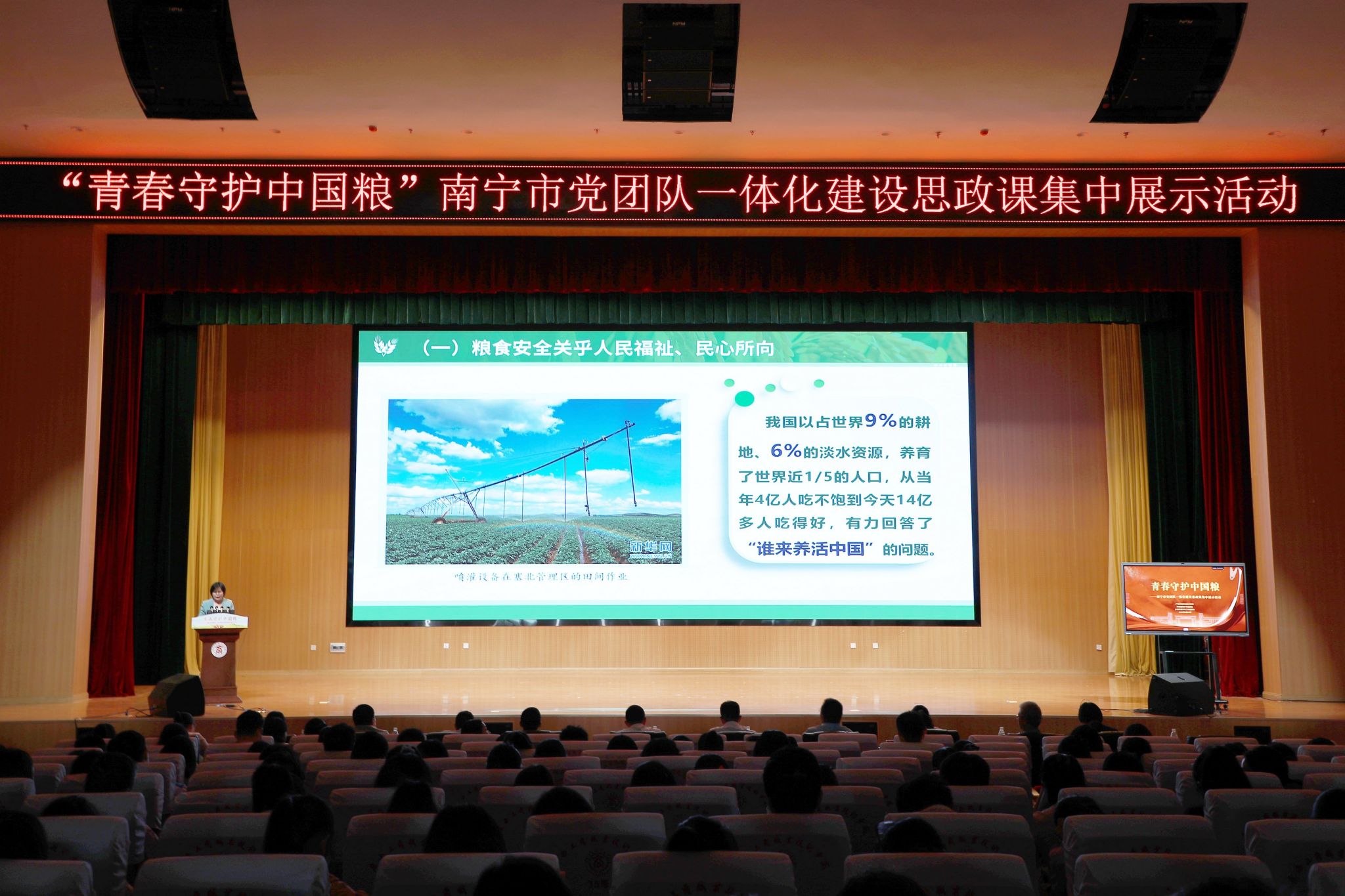 示范課展示層層遞進,覆蓋黨團隊不同群體。南寧市武鳴區城廂鎮第三小學大隊輔導員刁曉慧老師執教的少先隊隊會課《紅領巾守護中國糧》,通過生動活潑的互動形式,在少先隊員心中播下珍惜糧食的種子;南寧市武鳴區民族中學團委書記韋雨貝老師主講的《糧食安全,有我!——新時代青年團員的“糧”心使命》主題團課,緊密結合中學生的認知特點,激發團員青年以實際行動踐行使命擔當;我校林勇靈副教授則為大學生帶來《守護糧食安全的青春擔當》青春思政課,從宏觀政策、科技興糧、職業理想等多維度,引導青年學子將個人所學融入國家糧食安全戰略。