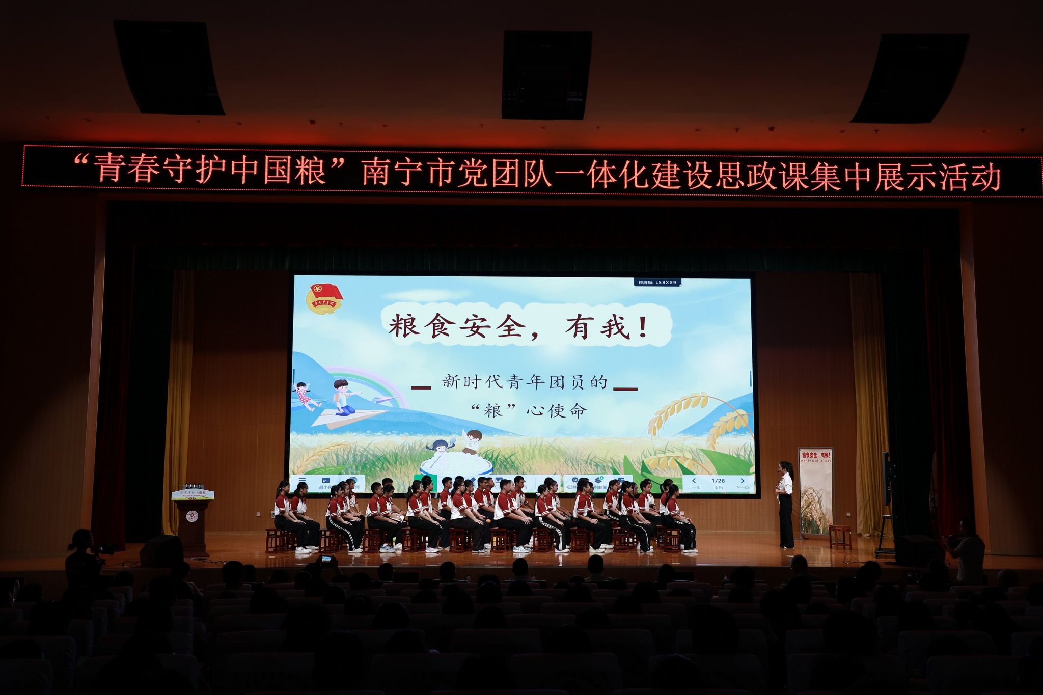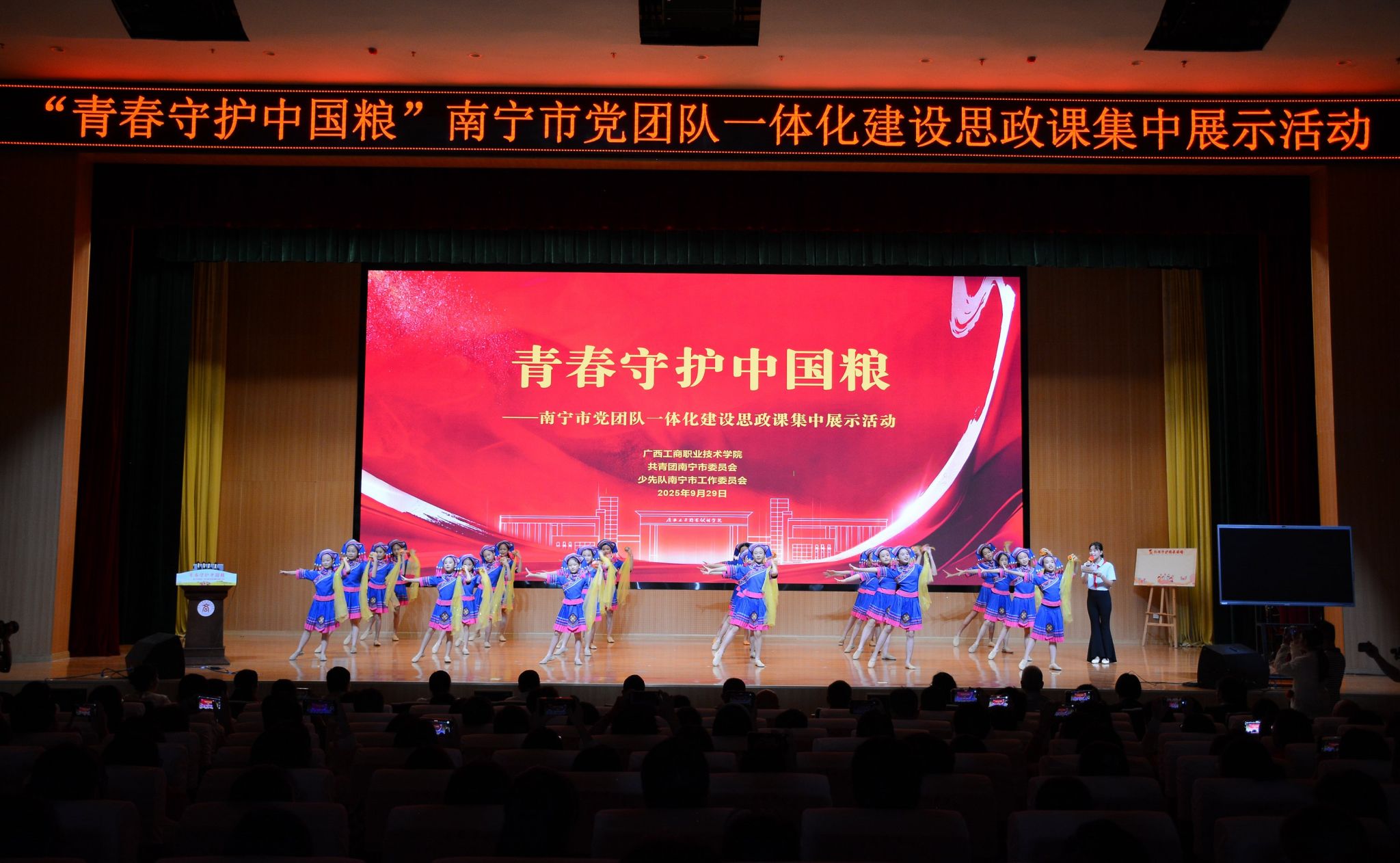 9月29日上午,以“青春守護中國糧”為主題的南寧市黨團隊一體化建設思政課集中展示活動在我校成功舉辦。本次活動由廣西工商職業技術學院、共青團南寧市委、少先隊南寧市工作委員會共同主辦,旨在深入推動習近平總書記關于糧食安全的重要指示精神在青少年群體中落地生根,積極探索貫通“小學—中學—大學”的黨團隊一體化思政育人新模式,強化廣大青少年對糧食安全戰略的認知與責任感。