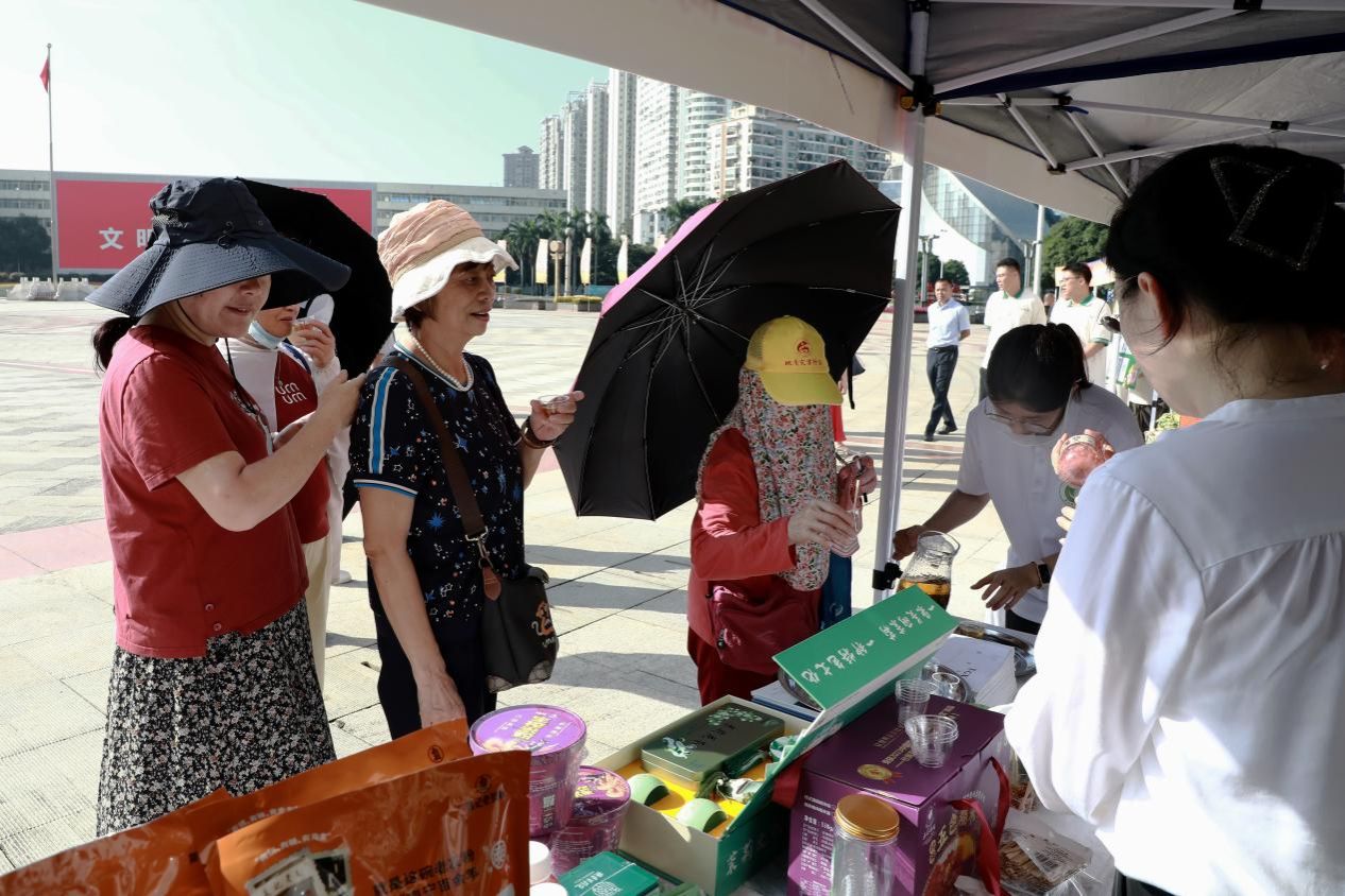 啟動儀式結(jié)束后,與會領(lǐng)導(dǎo)嘉賓到我校展區(qū)參觀,詳細了解我校展出的特色產(chǎn)品并進行品嘗,對我校展區(qū)的各項內(nèi)容給予了高度評價。此外,我校展區(qū)也獲得了現(xiàn)場眾多市民的青睞,紛紛前來參觀和品嘗,得到了大家的一致好評。