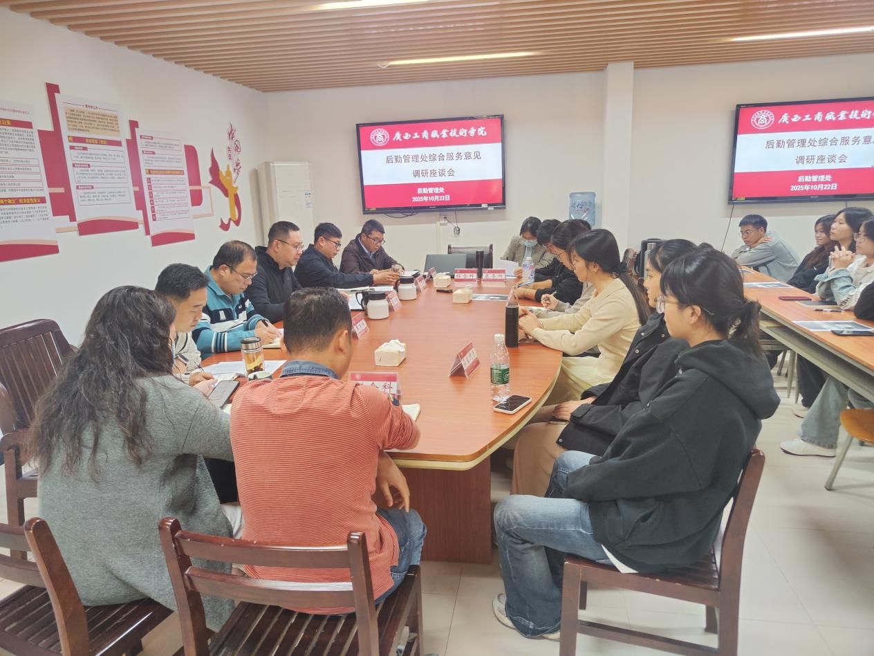 會議圍繞膳食服務、水電維修、環境衛生、安全保衛、醫療服務、基建服務以及洗衣機維護、直飲水問題、快遞服務優化、外賣管理等后勤服務問題展開深度調研,精準覆蓋師生校園生活“食住行醫”各方面。