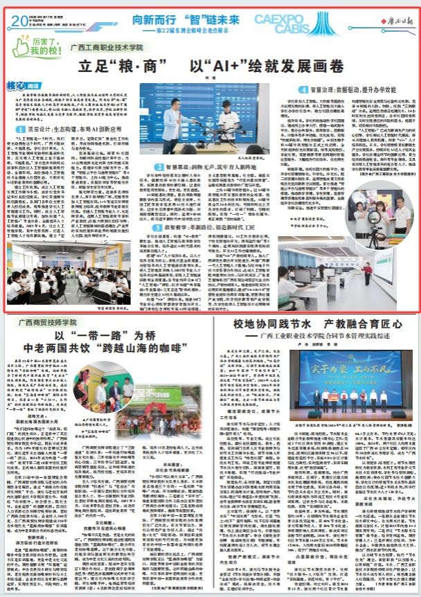 2025年9月17日,《廣西日報》刊登學校校長劉進署名文章,標題為:《立足“糧·商” 以“AI+”繪就發展畫卷》,全文如下: