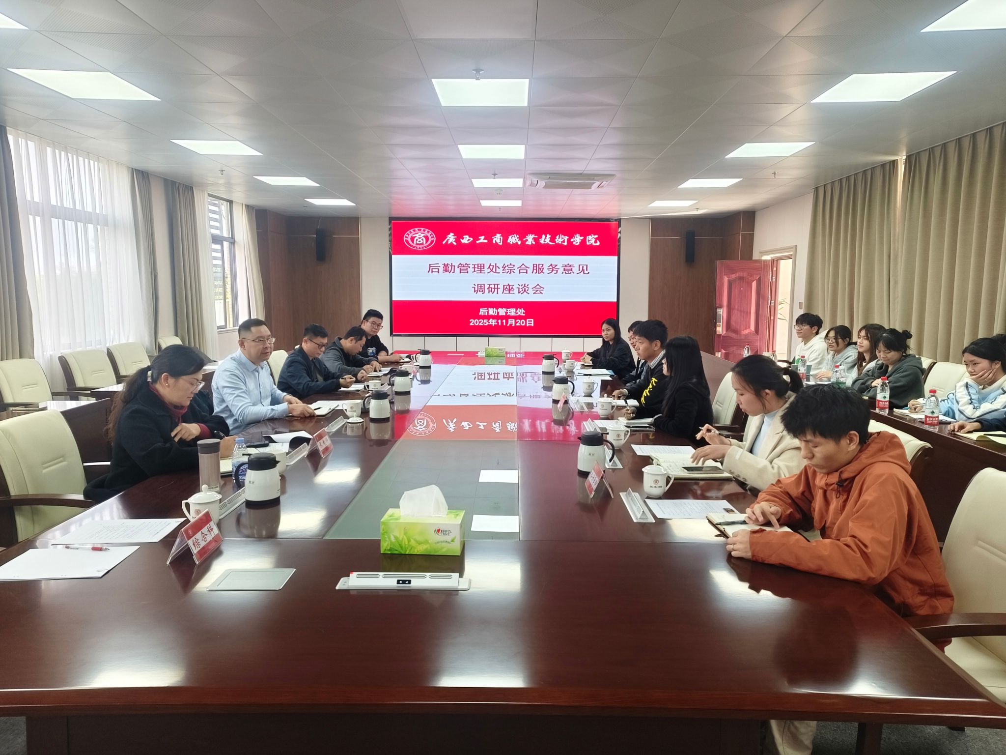 為深入了解師生對(duì)后勤服務(wù)的意見,進(jìn)一步提升學(xué)校后勤服務(wù)保障水平,11月20日,學(xué)校副校長(zhǎng)陳寧春在武鳴校區(qū)主持召開后勤服務(wù)意見調(diào)研座談會(huì)。后勤管理處處長(zhǎng)林昆榮、相關(guān)科室工作人員,以及來自糧油與管理學(xué)院、財(cái)金學(xué)院、會(huì)計(jì)學(xué)院的師生代表參加會(huì)議。