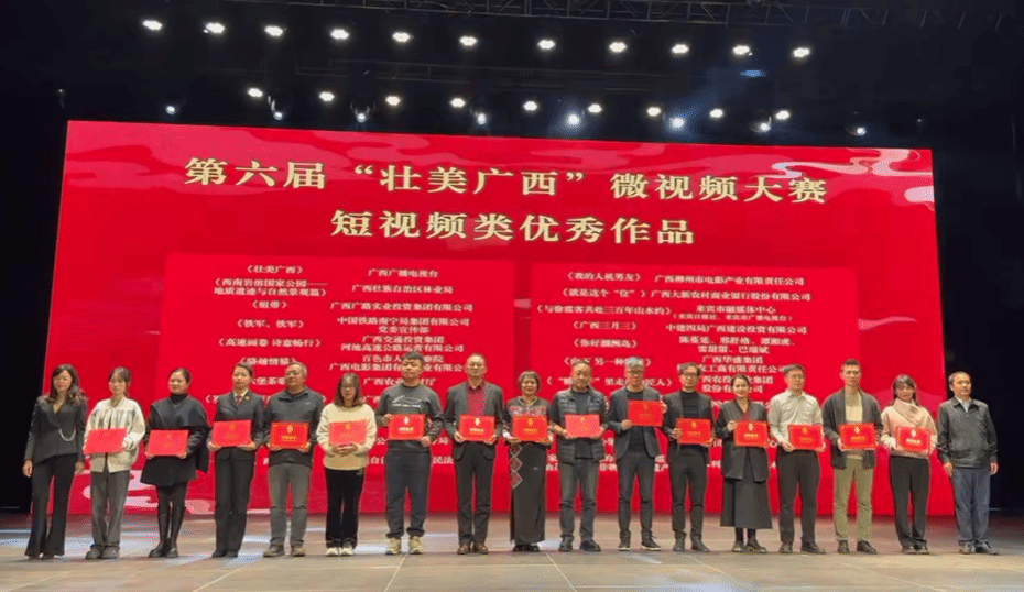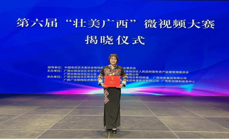 2025年11月28日,由自治區文聯、自治區國資委、自治區總工會、廣西文化產業集團聯合主辦的第六屆“壯美廣西”微視頻大賽頒獎儀式在南寧舉行。本次大賽共征集各類參賽作品672部,其中微電影59部、短視頻613部。經過初評、復評及網絡傳播熱度綜合評審,最終評選出82部獲獎作品和最佳導演獎1名。我校報送的短視頻《“香哩”飄瑤山 非遺“貴”傳承》在眾多參賽作品中脫穎而出,斬獲短視頻類優秀作品獎。