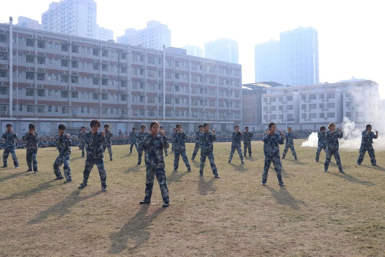總結表彰大會在莊嚴的升旗儀式中拉開序幕。在分列式匯報展示中,2025級的同學們擺臂幅度精準劃一,指尖繃直如利劍,如鋼鐵洪流般推進,吶喊聲中藏著不服輸的倔強。匯報表演中,各方隊進行了擒敵拳、匕首操、刺殺術等戰術表演,同學們凝眸藏志,身姿鏗鏘,拳腳交錯點燃青春熱血。充分展現出了15天來的刻苦訓練成果,展現了廣商院學子昂揚向上、奮勇爭先的精神面貌。
