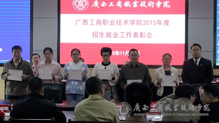 在2015年招生就業(yè)工作表彰會(huì)上學(xué)院副院長(zhǎng)李仕欽宣讀了招生就業(yè)工作獎(jiǎng)勵(lì)文件,隨后學(xué)院領(lǐng)導(dǎo)為獲獎(jiǎng)部門(mén)集體及個(gè)人頒發(fā)獎(jiǎng)狀。學(xué)院李維副院長(zhǎng)做招生工作小結(jié),指出2015年招生圓滿(mǎn)結(jié)束,生源充足,質(zhì)量提升并希望我院能再接再勵(lì),再創(chuàng)輝煌業(yè)績(jī)。學(xué)院黨委副書(shū)記蒙啟成發(fā)表就業(yè)工作小結(jié),指出我院畢業(yè)生就業(yè)形勢(shì)大好,但也提出希望全體教職工認(rèn)識(shí)到畢業(yè)生就業(yè)工作對(duì)學(xué)院發(fā)展的重要性,加強(qiáng)就業(yè)指導(dǎo)服務(wù),把我院畢業(yè)生就業(yè)工作推向一個(gè)新的工作平臺(tái)。