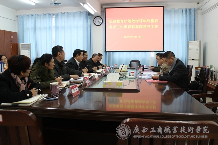 2015年12月15日,教育廳績效考評年終指標(biāo)考評工作組蒞臨我院指導(dǎo)工作,教育廳職成處副處長萬鋒鋒對我院項(xiàng)目招標(biāo)工程和自治區(qū)獎(jiǎng)助學(xué)金評定工作進(jìn)行了考察,我院負(fù)責(zé)教學(xué)工作李維副院長出席此次會(huì)議并向其進(jìn)行了年度工作匯報(bào),此外,教務(wù)科研處、會(huì)計(jì)系、財(cái)信系、學(xué)工部、現(xiàn)教中心等相關(guān)部門負(fù)責(zé)人參加此次會(huì)議,各司其職,井然有序地就相關(guān)考評工作組專家提出的問題進(jìn)行了解答。
