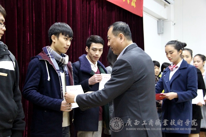 (我院黨委副書記蒙啟成為先進班集體頒發證書)