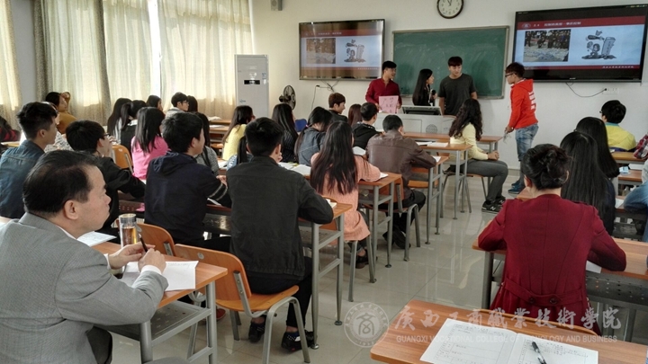 周鵬程老師首先從中國廣場舞大媽的身影,深圳山體滑坡兩個事件導入課程,逐步講述了控制的含義,控制的類型,控制的方法等幾個方面的知識。周老師講課旁征博引,使用許多生動的圖片,引用了古典寓言故事,又結合當今發生在同學們身邊的事件和新聞故事,講課條理清晰,講解準確,整堂課深入淺出,風趣幽默,呈現出周老師良好的師范素質。周老師還邀請幾位同學現場表演了一個不要亂扔垃圾的小短劇,讓同學們更好地理解了控制的含義和作用,也讓現場聽課的領導、老師們感受到了這堂課有趣的氛圍。課后,項目組成員還與聽課的領導、老師們對該堂課進行了深入的研討。