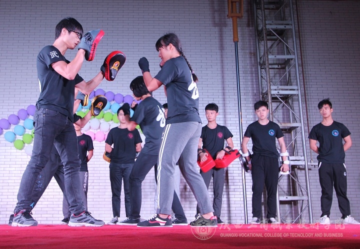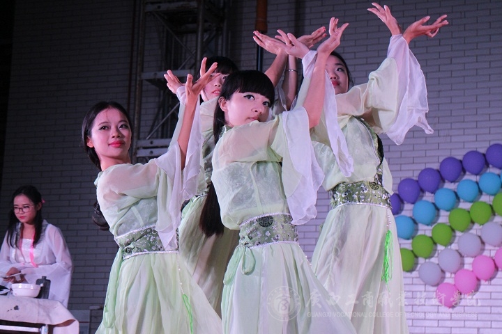 首先由精彩的舞獅子表演為晚會拉開了帷幕,主持人介紹了出席晚會的老師。接著,演奏、合唱、舞蹈、瑜伽、走秀、武術等12個表演節目輪番上陣。音樂協會樂隊演奏的《Pieces+不能說的秘密》動聽的歌喉令人陶醉;街舞社表演的節目《T.O.KING SHOW》,勁爆動感十足,激情洋溢,點燃了晚會火熱的氣氛;書畫協會帶來的《蝶飛花舞》中,身著古色古香旗袍的女子,唯美絢麗,隨著悠揚的樂聲翩翩起舞,現場隨即揮筆寫下的毛筆字帖,帶現場觀眾領略了一番中國傳統文化獨特的魅力。輪滑協會上演了舞蹈《大王叫我來尋山》,可愛搞笑的動作贏得了現場觀眾的喝彩。在節目期間,廖顯圖書記、陶曉斌老師為2014-2015年度社團文化藝術節舉辦的競賽中獲獎的團體與個人進行頒獎。社團文化藝術節閉幕式晚會節目以社團文化為主題,為我院各學生社團提供了一個集中展現社團風采的舞臺。