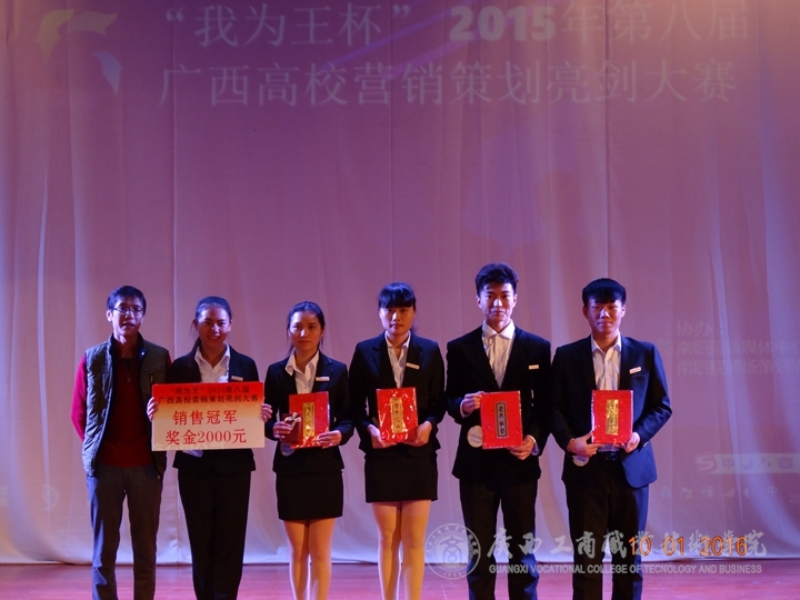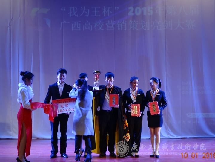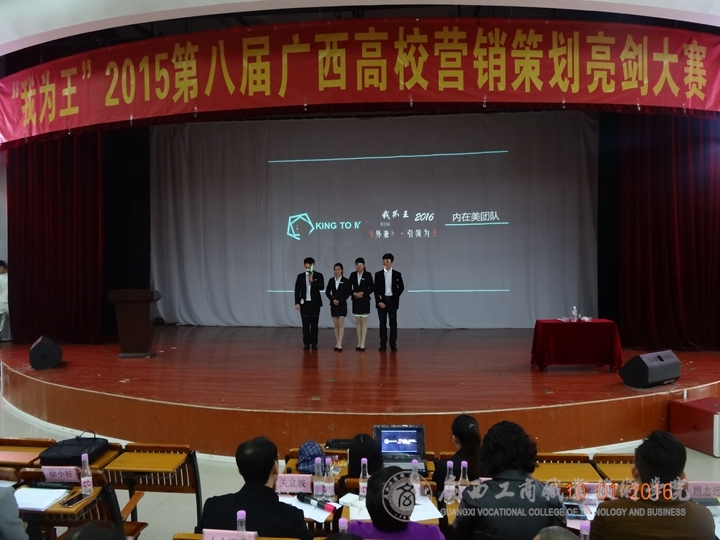 2016年1月10日13時,由中國市場營銷課程標準開發中心廣西分中心主辦,廣西南寧奧理可贏企業管理咨詢有限公司承辦、廣西太常服飾有限公司贊助的“我為王”2015第八屆高校營銷策劃亮劍總決賽在廣西財經學院舉行。我院共有4支隊伍在兩個多月的不斷奮戰中,經過層層地選拔,在廣西區一百多支參賽隊伍中脫穎而出,并進入到了總決賽環節。這是該賽舉辦八屆以來,廣商院首次擁有4支隊伍進入總決賽并奪得一系列大獎的重大突破。