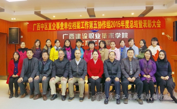 2015年12月29日上午,廣西中區直企事業單位檔案工作第五協作組2015年度總結暨表彰大會在廣西建設職業技術學院召開。會議由廣西建設職業技術學院辦公室主任曹天仕主持,廣西壯族自治區檔案局領導以及第五協作組各高校成員單位檔案工作人員參加了會議。