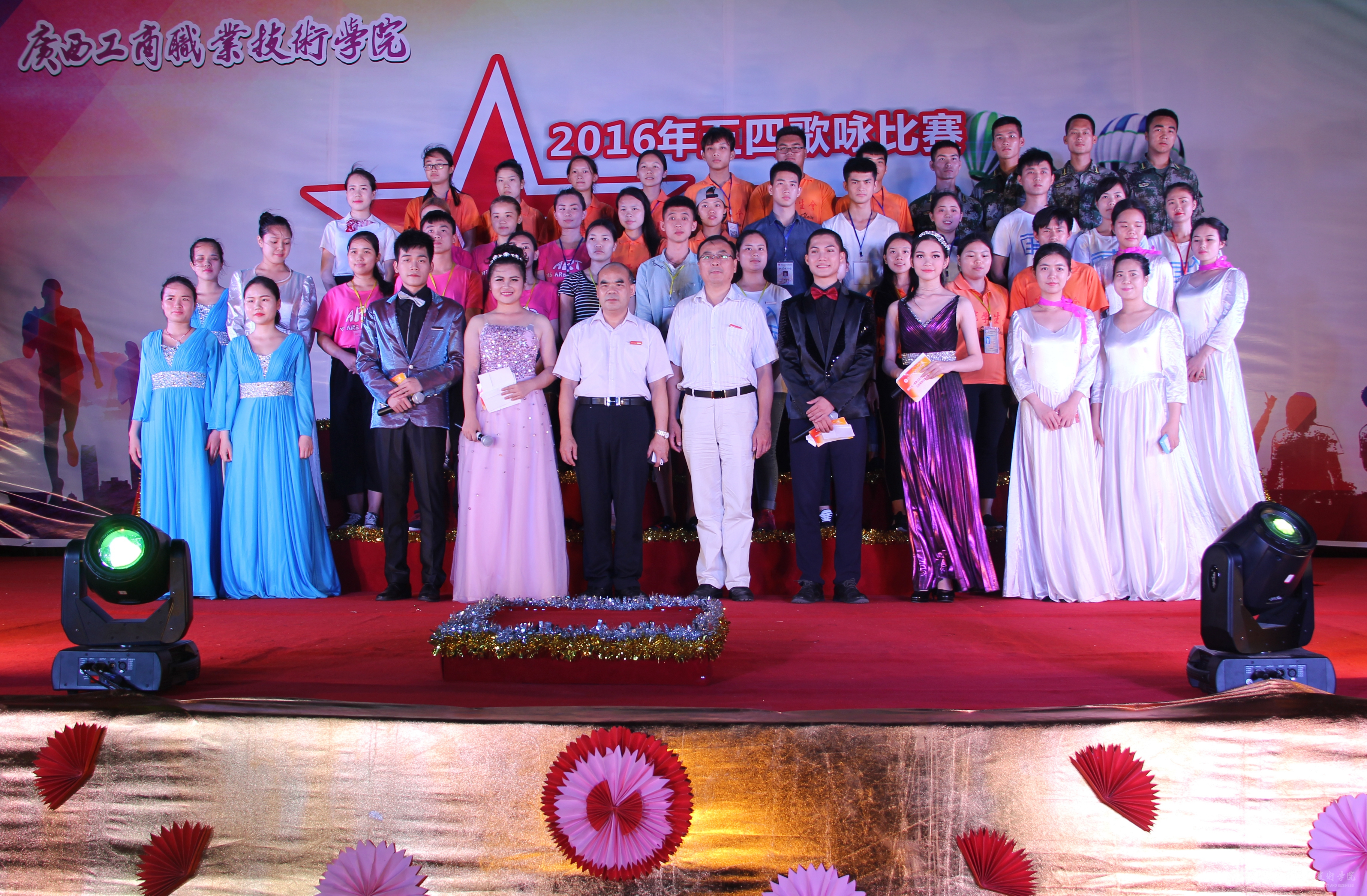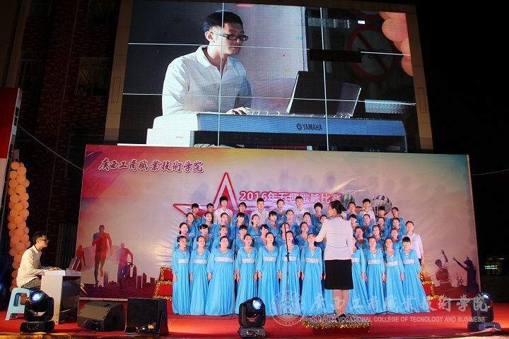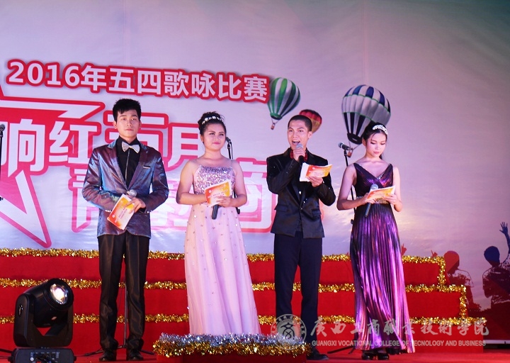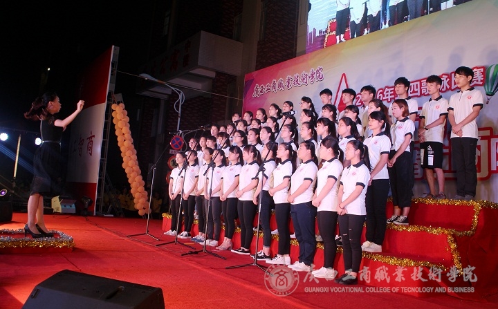 2016年5月6日晚,“唱響五月,青春廣商院”五四歌詠比賽晚會在我院本部LED大屏幕下隆重舉行。學院黨委書記覃武云、學院黨委副書記蒙啟成及學院辦公室、宣傳部、學工部、后勤處、各系相關負責人和各系師生出席晚會。晚會還特地邀請了外校的音樂老師黃華、鐘麗娟、徐斌、黃金、張勤來作為評委。