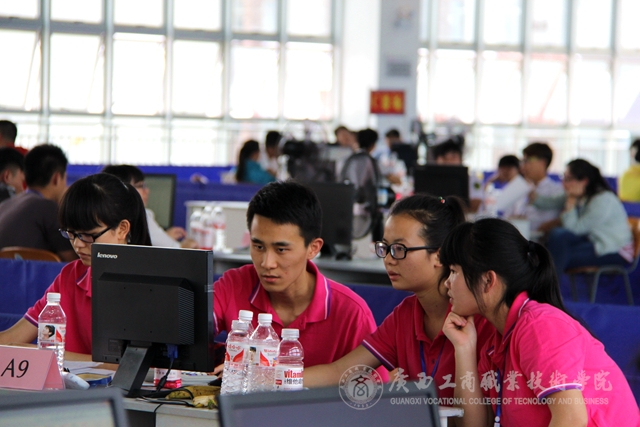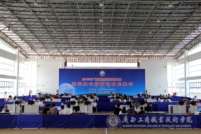 2015年4月25日早上9點,廣西職業院校技能大賽高職組市場營銷技能賽項在校本部文體館二樓緊張進行。