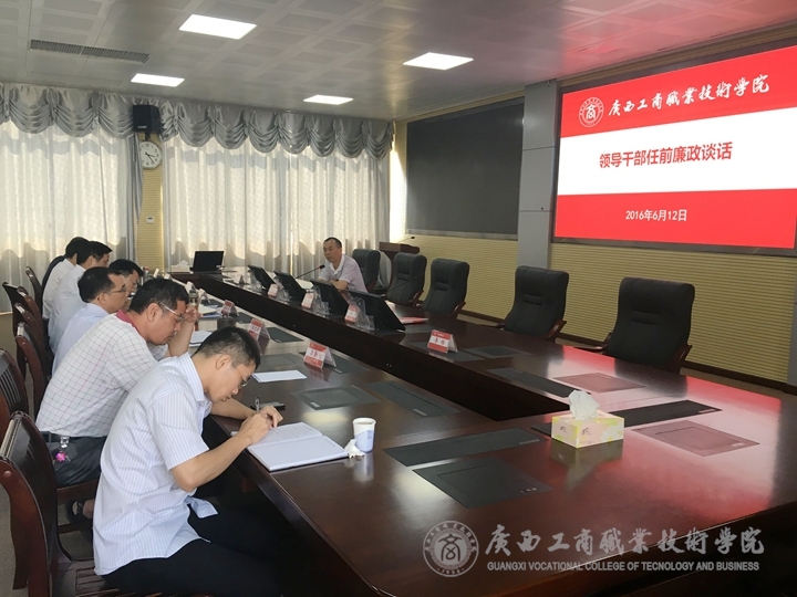 2016年6月12日下午,學院黨委副書記、紀委書記蒙啟成同志對6位新調整工作崗位的處級干部做任前廉政談話。會上,蒙啟成對6位處級領導干部提出了四點要求: