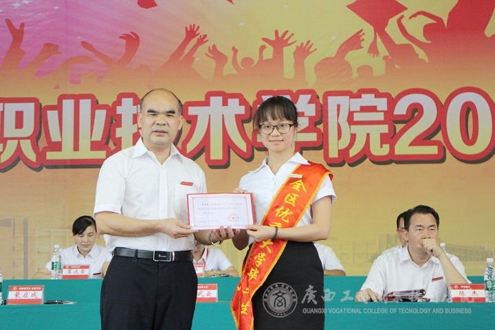 (覃武云書記為優秀畢業生頒發證書)